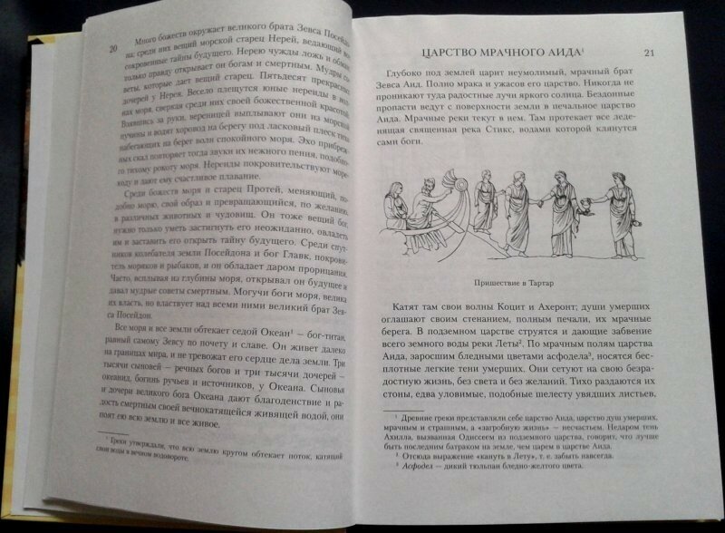 Хорошее , очень полное издание, несмотря на большой объем, не тяжелая, читается ребенком с удовольствием. Просто найдите для ребенка интересный момент, расскажите о мифам, и чтение будет еще более увлекательным. Спасибо :) -