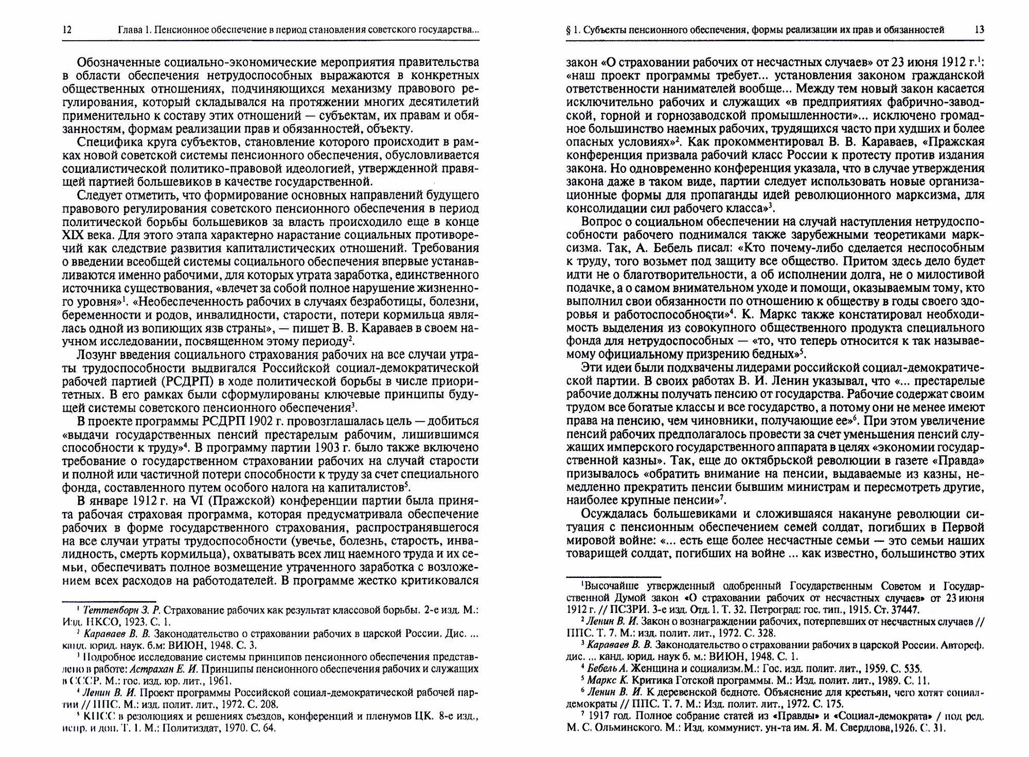 В монографии представлен анализ формирования системы советского пенсионного обеспечения, которое происходило в период с октября 1917 г. по 1928 г. В это время определяются ключевые направления социальной политики советского государства, выстраивается механизм правового регулирования пенсионного обеспечения, организационно-правовые формы реализации пенсионных прав и обязанностей приобретают законченный вид. На примере советской России в работе раскрываются основные закономерности развития системы пенсионного обеспечения, которые характерны и для нашего времени: дифференциация мер социальной поддержки по степени значимости профессиональной деятельности субъекта для государства, прямая взаимосвязь между формами пенсионного обеспечения и экономическими условиями конкретного периода общественной жизни, ограничение размеров и видов пенсионного обеспечения лимитами бюджетных средств. Монография способствует более глубокому пониманию сущности советского пенсионного законодательства, на базе которого сформировалась современная система правового регулирования пенсионного обеспечения.