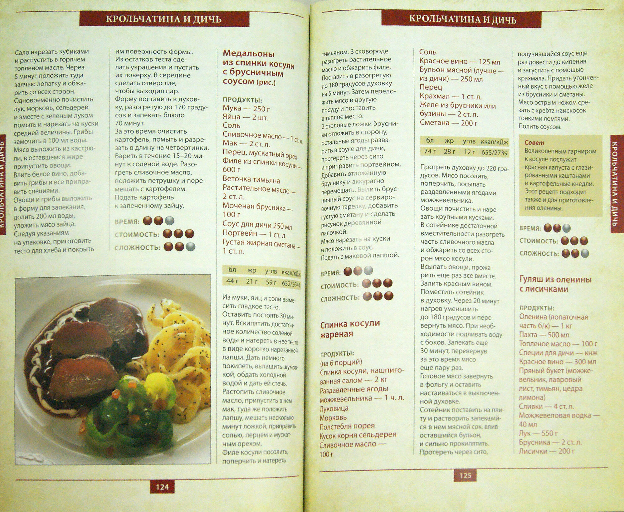 Книга мне очень понравилась. Во-первых, много полезных советов. Здесь можно много узнать о рыбе, мясе, овощах и фруктах. Подробно описано приготовление блюд с указанием времени и стоимости продуктов. Также указаны ккал и белки, жиры , углеводы и т.д.Пошаговое приготовление блюд. Цветные иллюстрации.Качество бумаги отличное. Есть раздел мучные и яичные блюда. Книга очень полезная. Купив эту книгу, вы никогда не пожалеете. Единственный недостаток не совсем твердый переплет.