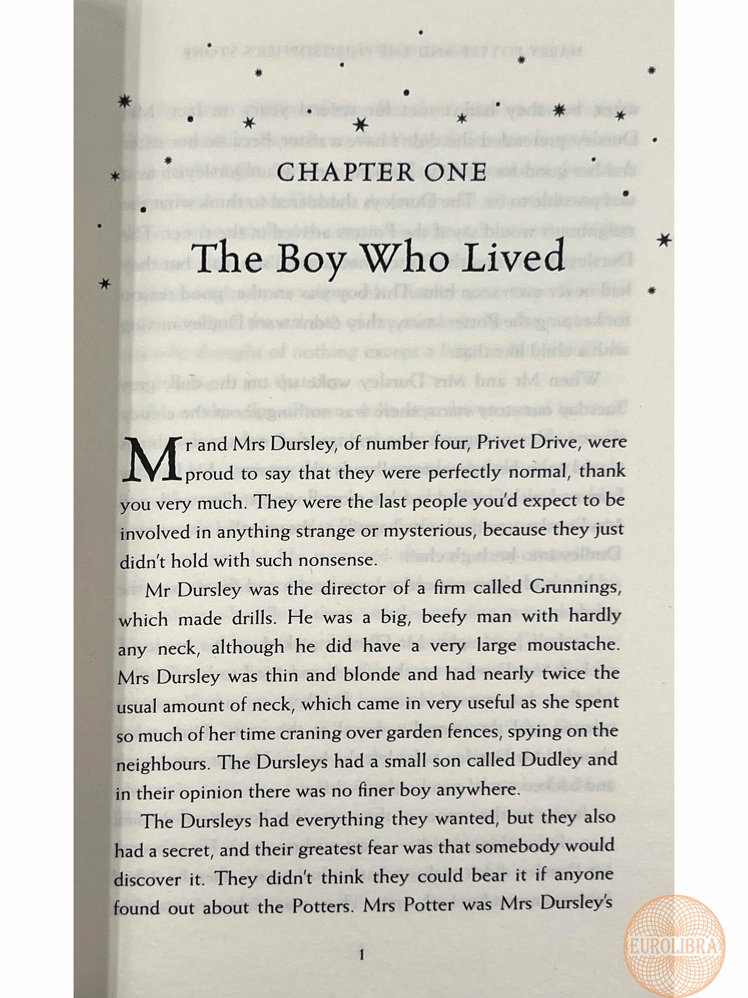 Harry Potter thinks he is an ordinary boy. He lives with his Uncle Vernon, Aunt Petunia and cousin Dudley, who are mean to him and make him sleep in a cupboard under the stairs. (Dudley, however, has two bedrooms, one to sleep in and one for all his toys and games.) Then Harry starts receiving mysterious letters and his life is changed forever. He is whisked away by a beetle-eyed giant of a man and enrolled at Hogwarts School of Witchcraft and Wizardry. The reason: Harry Potter is a wizard!