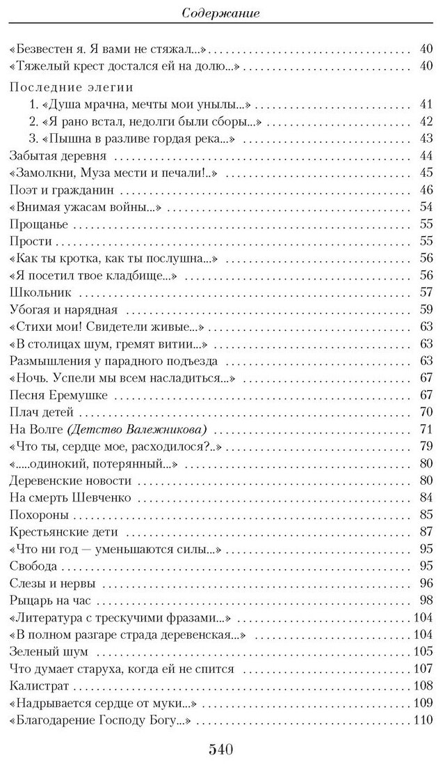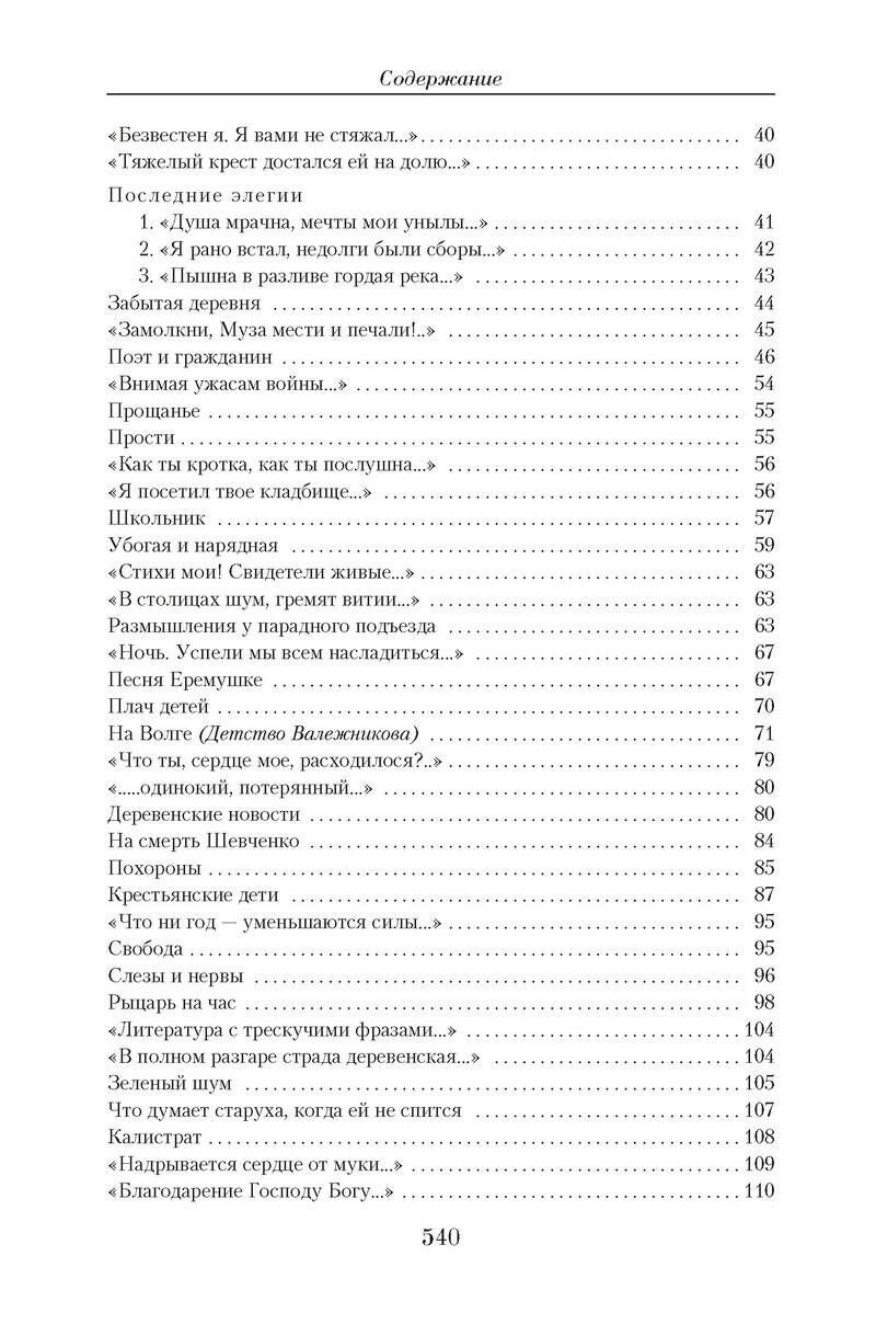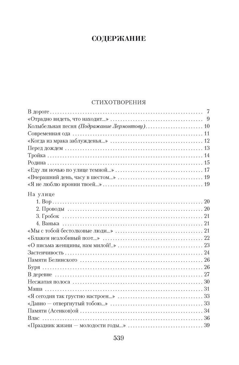 .В книгу вошли избранные произведения Н. А. Некрасова, среди которых такие известные стихотворения, как «Еду ли ночью по улице темной...», «Мы с тобой бестолковые люди...», «Рыцарь на час», «В полном разгаре страда деревенская...», «Зеленый шум» и другие, а также поэмы «Мороз, Красный нос», «Кому на Руси жить хорошо», «Русские женщины».