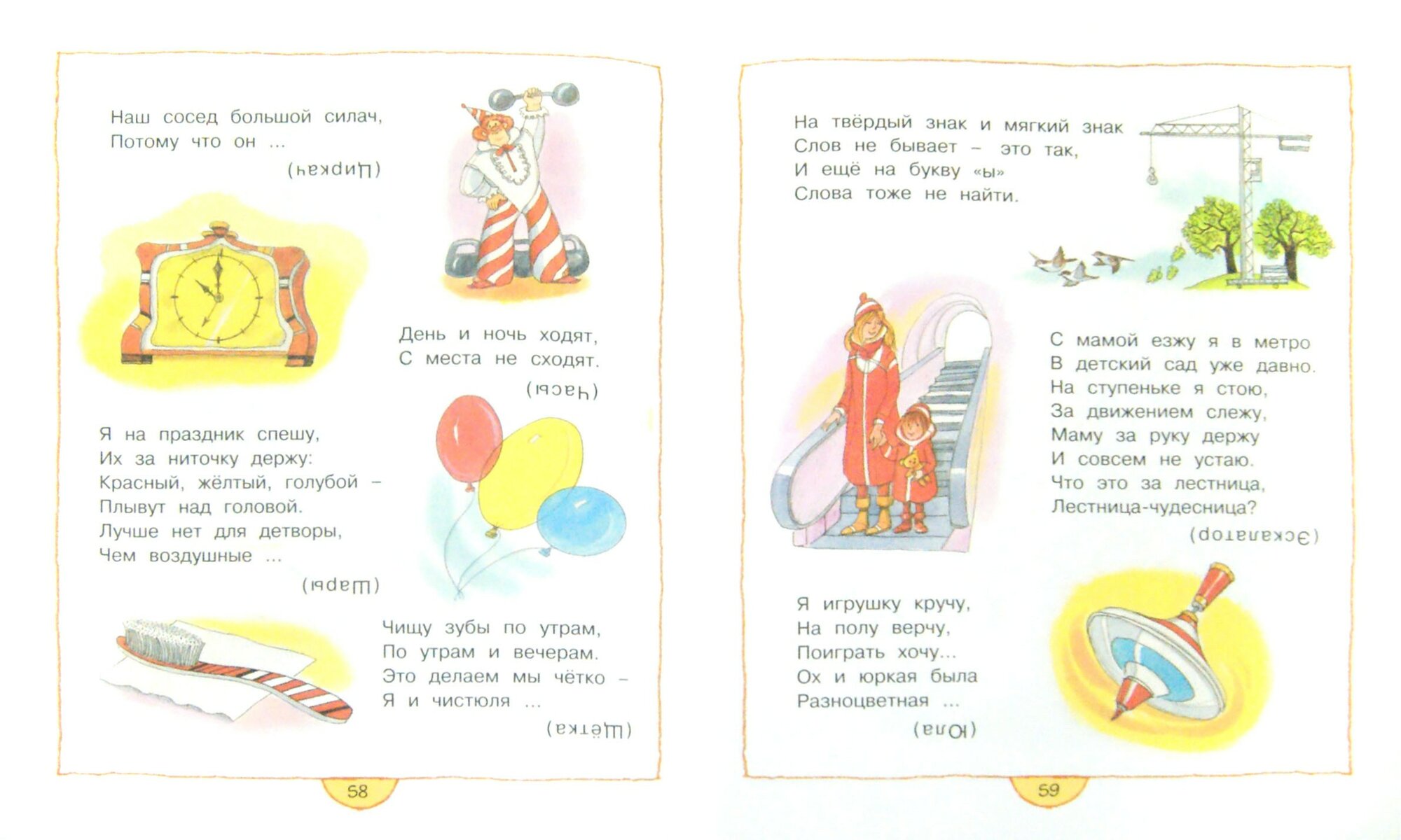Очень красивая книжечка среднего формата! Белые плотные странички, крупный шрифт большие приятной яркости картинки такие эмоциональные и добрые. В книге есть и стишки и загадки (по алфавиту) и сказки и даже считалочки.