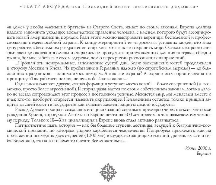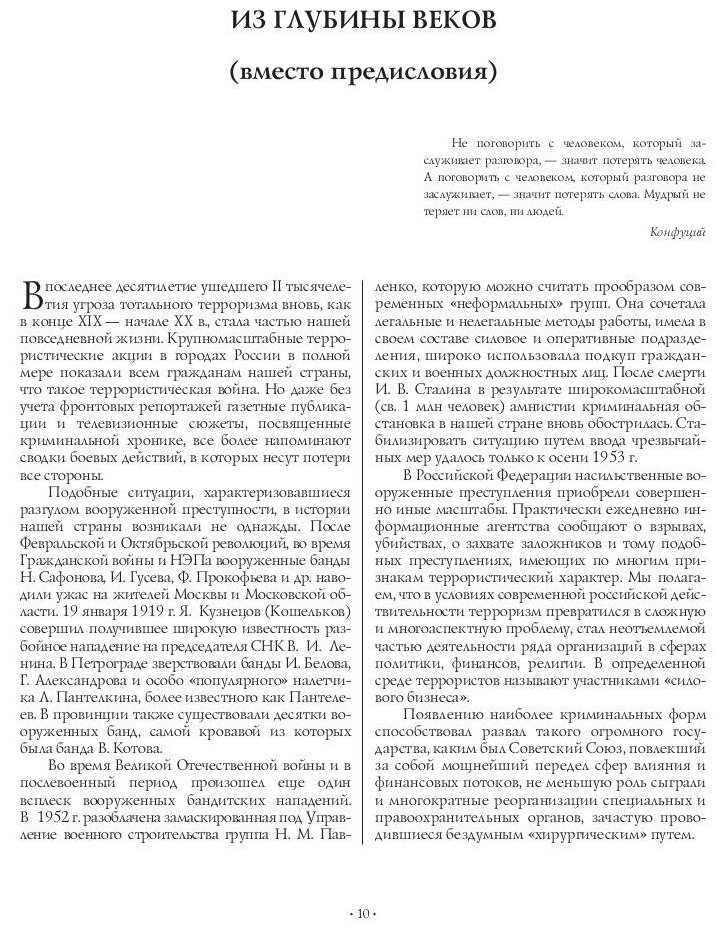 Книга, ставшая результатом продолжительного изучения редких архивных материалов, подробно рассказывает об истоках, формировании и развитии отечественных силовых, разведывательных и контртеррористических подразделений, о методах работы и практическом опыте спецслужб на различных этапах истории российского государства.