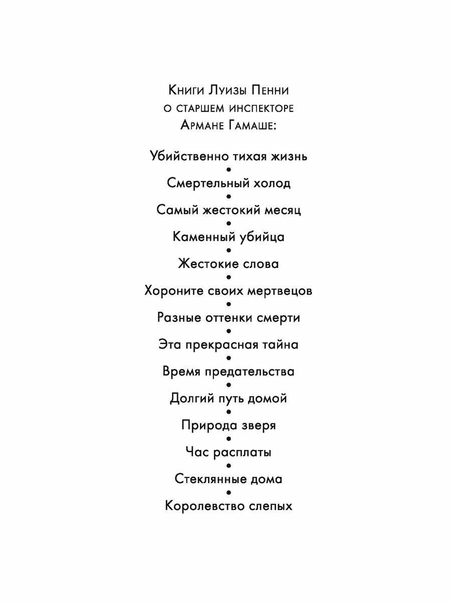 Роман "Убийственно тихая жизнь" открывает серию расследований блистательного старшего инспектора Армана Гамаша - нового персонажа, созданного пером Луизы Пенни, ставшей единственным в мире пятикратным лауреатом премии Агаты Кристи.