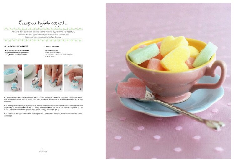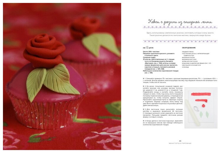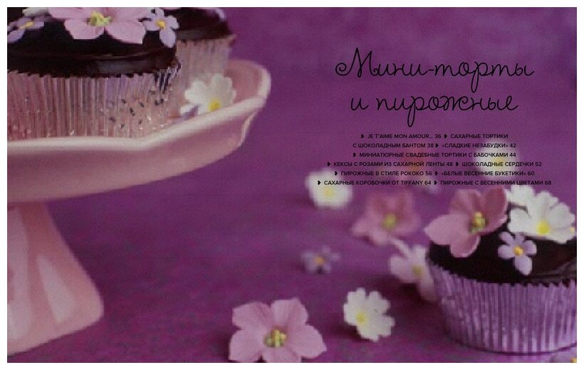 Книга также является источником творческого вдохновения кондитера. Множество необыкновенно красивых и изящных идей для выпечки - от печений до сложных тортов. По сути книги этой серии - подробнейшие мастер-классы кондитерского искусства, от урока по приготовлению теста до финальной точки в оформлении изысканного десерта. Также как и в "Сладком шике" в книге даны базовые рецепты теста для печений, кейков и тортов, основы приготовления ганаша и масляного крема, описание основных необходимых инструментов, подробные инструкции по сборке сложных тортов и изготовлению цветов из мастики для украшения, основы работы с глазурью. И в конце предложены трафареты для изготовления приведенных шедевров.