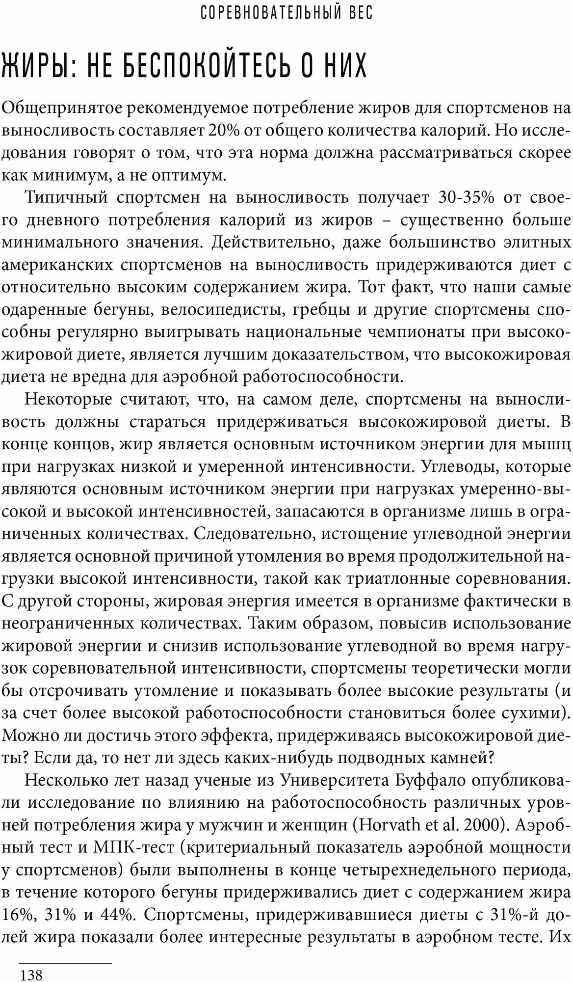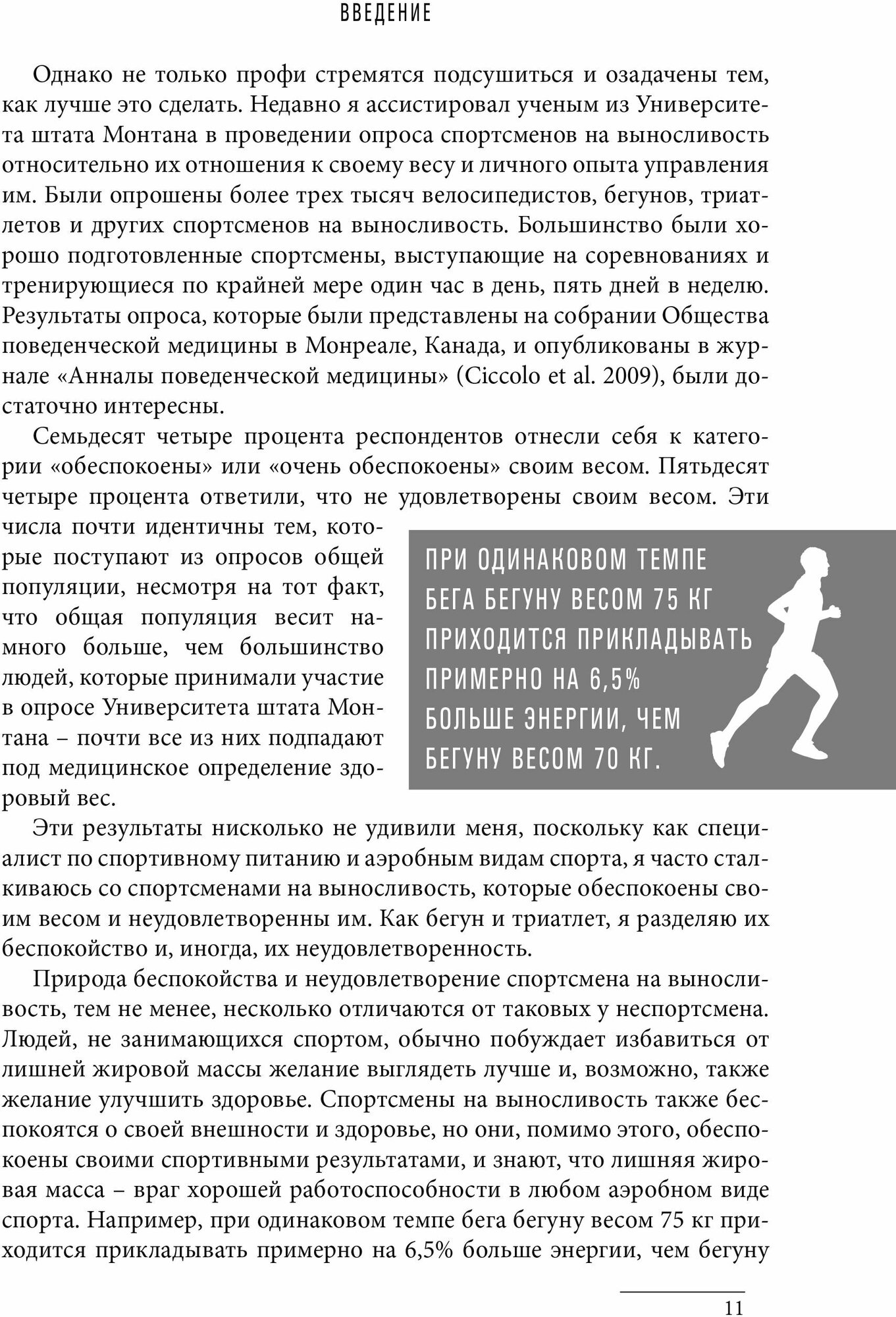 В книге рассказывается о влиянии состава тела на физическую работоспособность в различных аэробных видах спорта и о стратегии достижения оптимального "рабочего" веса. Предлагается информация по здоровому питанию, способствующему уменьшению жировых отложений и наращиванию или поддержанию мышц. Раскрываются секреты управления аппетитом и даются рекомендации по тренировкам. Книга также содержит дневники питания 14-ти элитных спортсменов, рецепты вкусных и здоровых блюд от повара, нутрициониста и профессиональной триатлетки Пип Тейлор, силовые упражнения для бегунов, велосипедистов, гребцов, лыжников, пловцов и триатлетов.