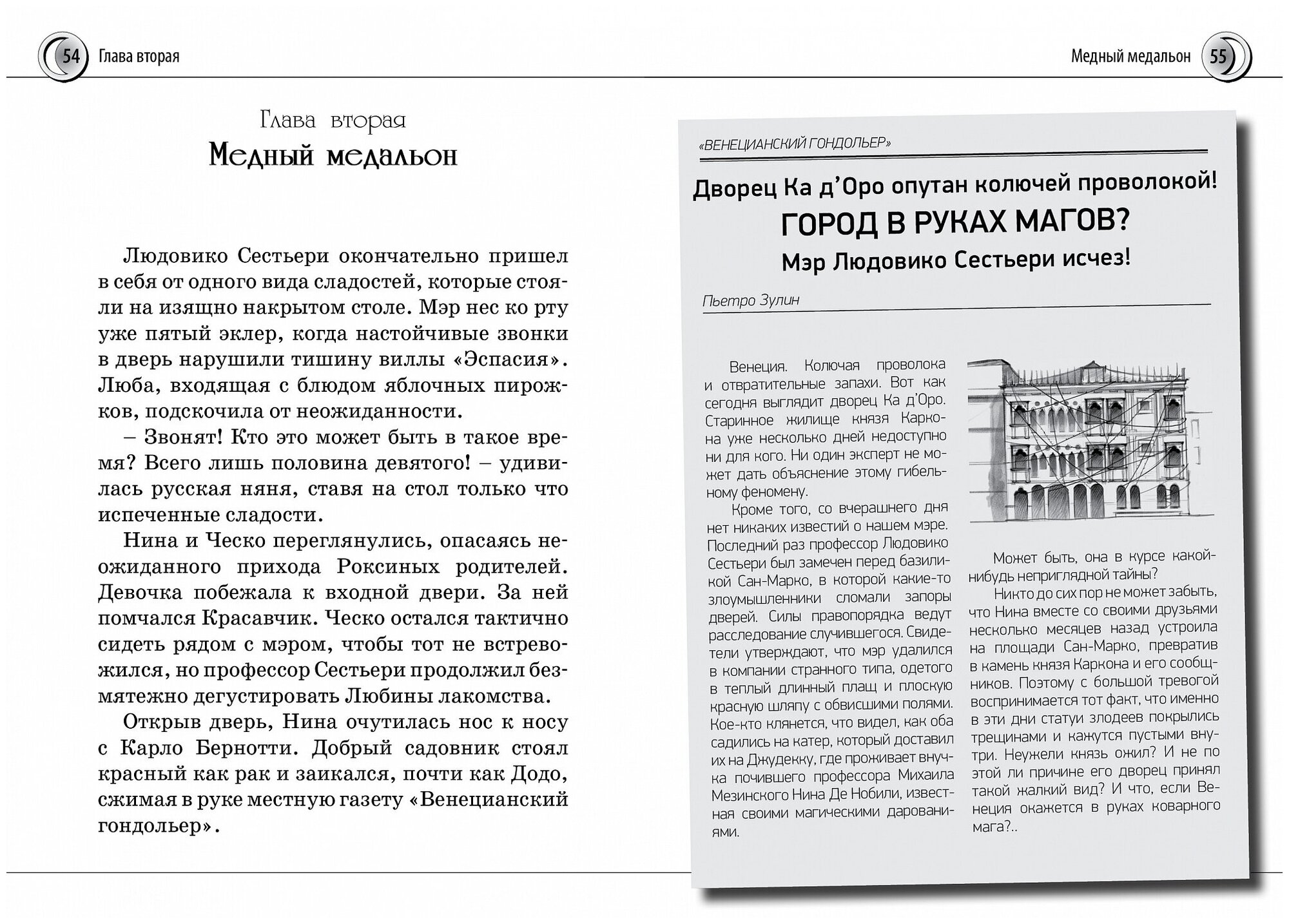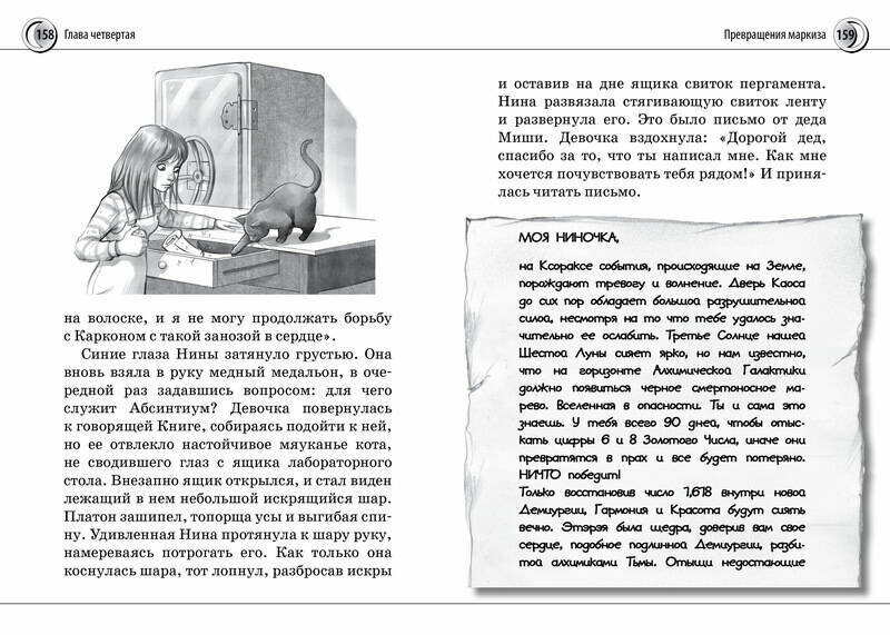 Нина Де Нобили, мадридская школьница, внучка мага и алхимика Михаила Мезинского, вместе со своими друзьями продолжает восстановление Золотого Числа. Это Число -1,618 - обеспечивает жизнь, красоту и гармонию прекрасной планеты Ксоракс. Без него просто не может существовать Вселенная! В книге "Нина и Золотое Число" ребятам удалось спасти две его единицы, вступив в жесточайшую схватку с каменными Воинами князя Каркона - вечного врага Нины, задумавшего во что бы то ни стало погубить Ксоракс. В книге "Нина и сила Абсинтиума" юная алхимичка пытается найти цифру 6 Золотого Числа. Удастся ли ей столь непростая миссия? Ведь Каркон не дремлет, все силы Зла стоят на его стороне! Но Нина, отважная, добрая сердцем девочка, не знает страха и без колебаний вступает на путь борьбы.