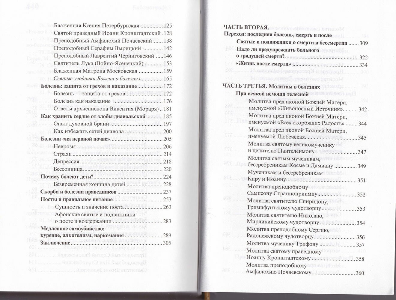 В книге приводятся советы святых и подвижников, рекомендации православных врачей, примеры чудесных исцелений и множество молитв при различных недугах.