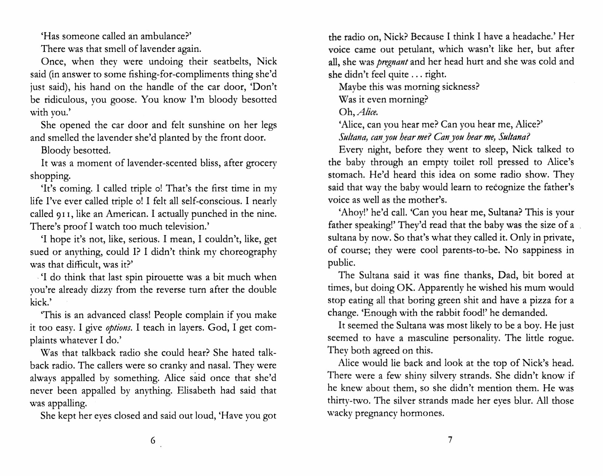 Alice is twenty-nine. She adores sleep, chocolate, and her ramshackle new house. She's newly engaged to the wonderful Nick and is pregnant with her first baby.