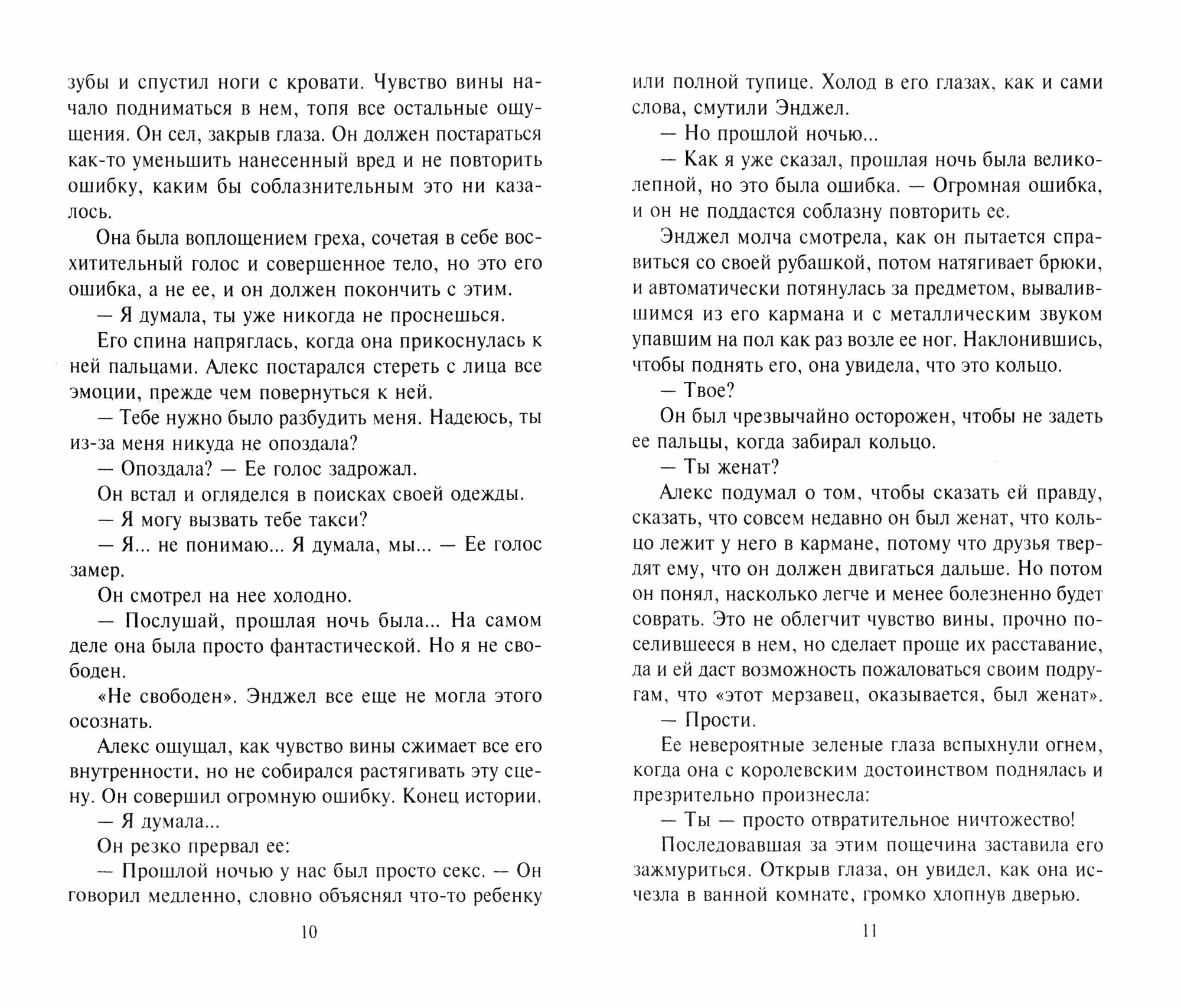 любовь с первого взглядаМне понравилось интригующее начало. Дальнейшее развитие событий, может, кому – то покажется трафаретным, но читается с большим удовольствием. Очень понравился описываемый характер Энджел, ее отзывчивость, самоотверженность, любовь к жизни и, конечно, любовь к Алексу. Очень трогательно воспринималась борьба с самим собой Алекса. И, конечно, как всегда в таких романах, хороший конец порадовал.