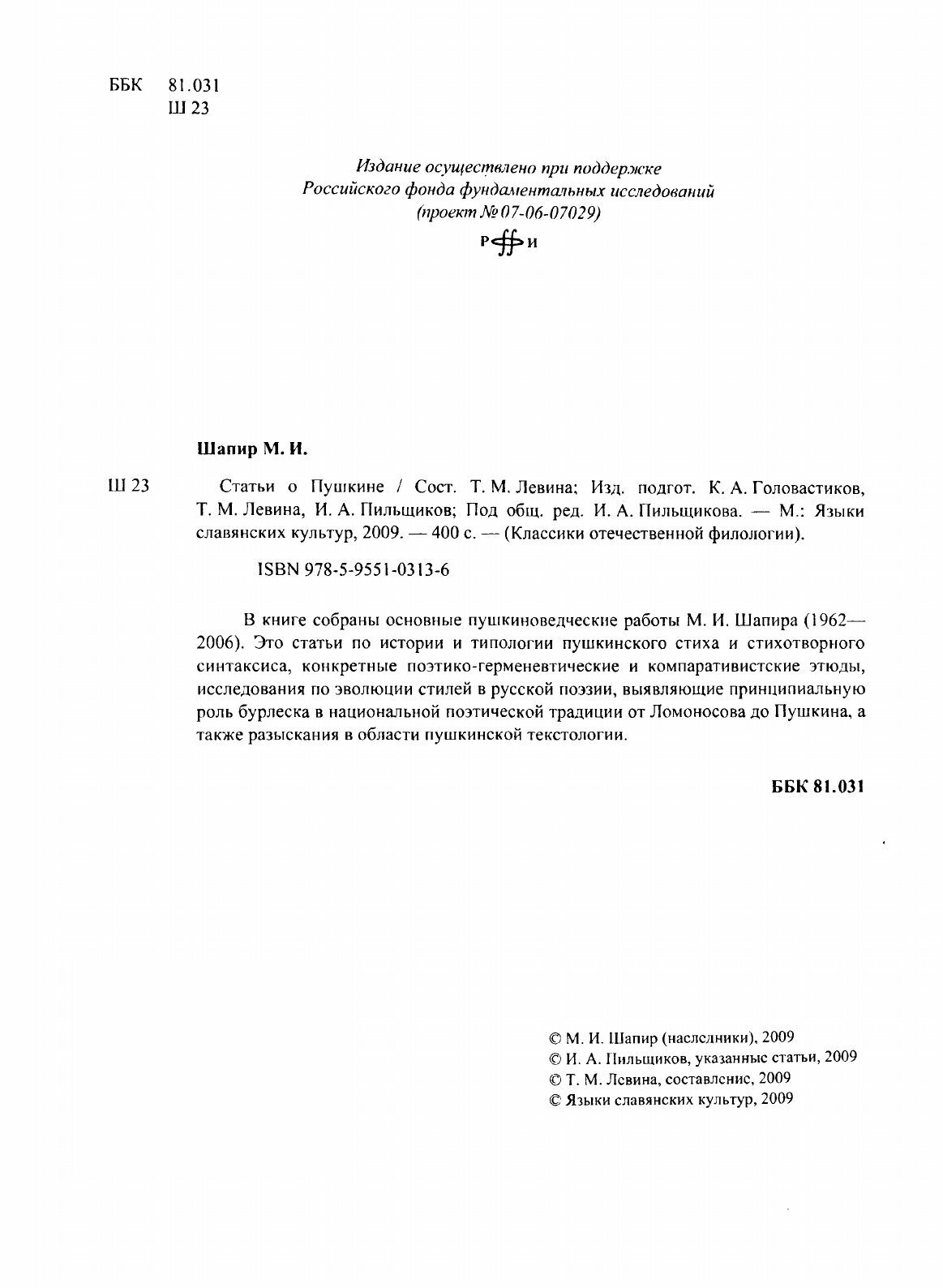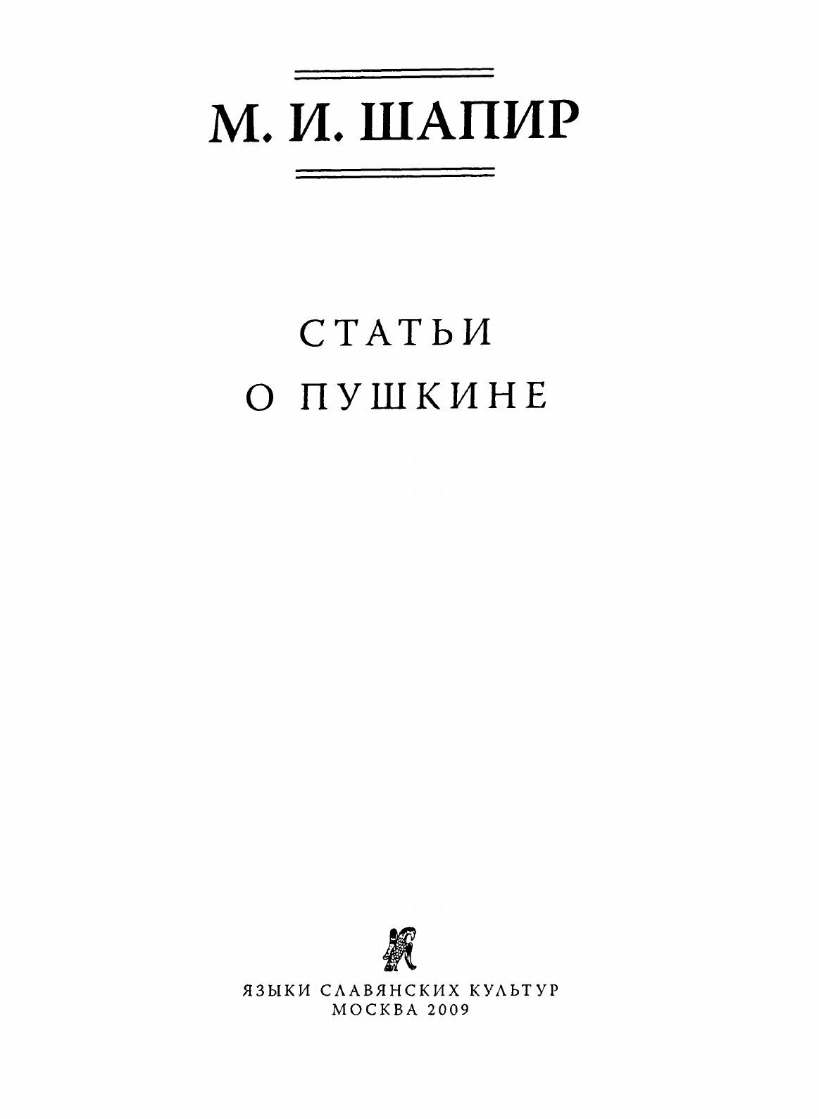 Книга: Статьи о Пушкине (М. И. Шапир); Языки Славянской Культуры, 2009