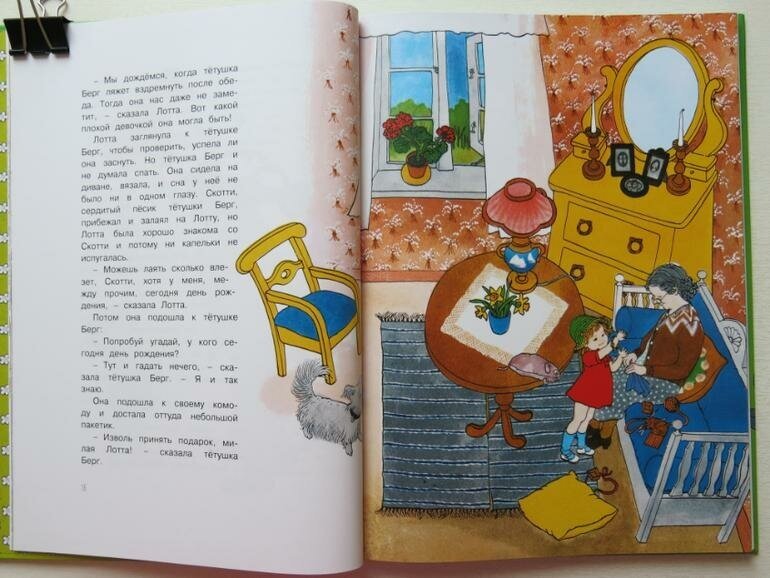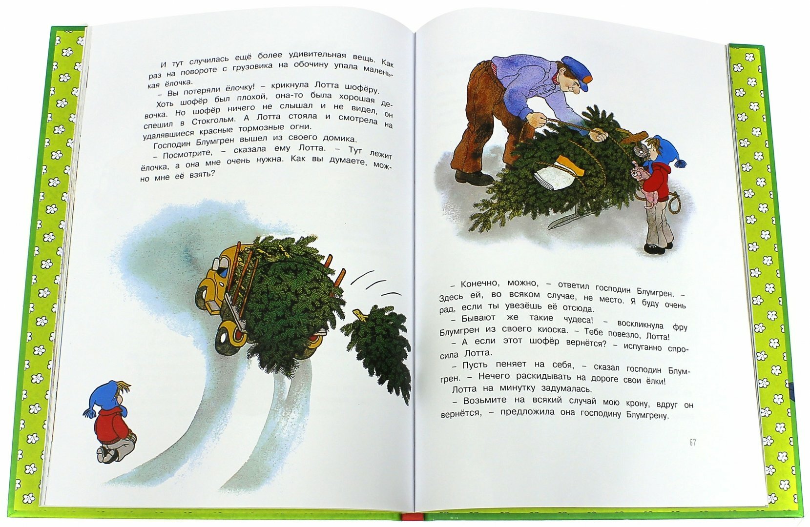 А мне не понравилась иджея разных по стилю иллюстраций в 1 книге. Очень милые рисунки в первой истории. Такой же Лотту хочется видеть и дальше. А дальше цвет картинок тусклый (стиль такой), герои выглядят иначе. Словом мне больше нравится в одном стиле, как например с Джорджем, Финдусом и тд и тп.