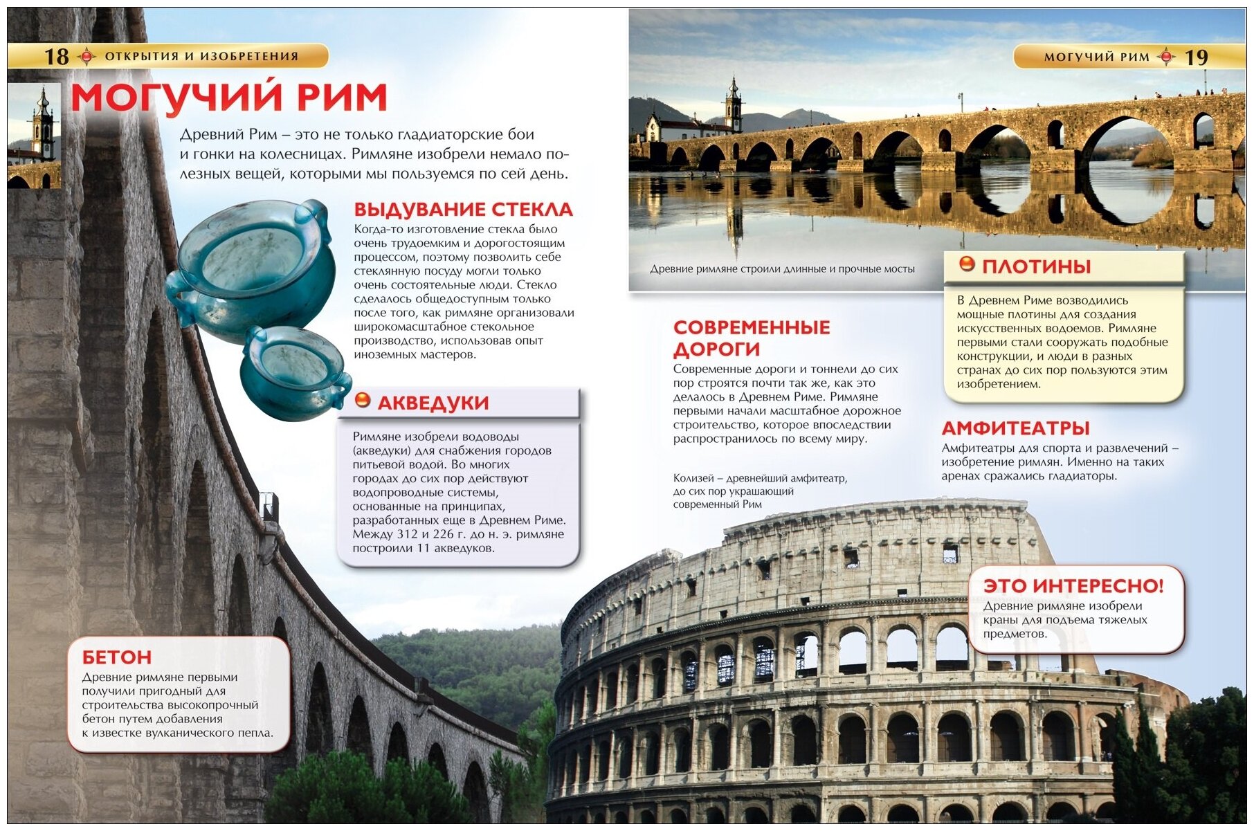 «Открытия и изобретения. Детская энциклопедия» ещё одна книга из серии детская энциклопедия. В книге представлены изобретения и открытия начиная с доисторических времен и до наших дней. Читать интересно, много ярких крассивых картинок, фотографий. Кратко рассказывается о древнем египте, месопотамии, китае, греции, риме, индии, америке. В книге кратко представлен обзор отважных исследователей и их открытий. Очень кратко сказано об энергии и здоровье, исследовании космоса. Описана эволюция морских и воздушных судов. Довольно интересно было читать, написано кратко по основным мировым позициям но существенно. В домашней библиотеке книга лишней не будет.