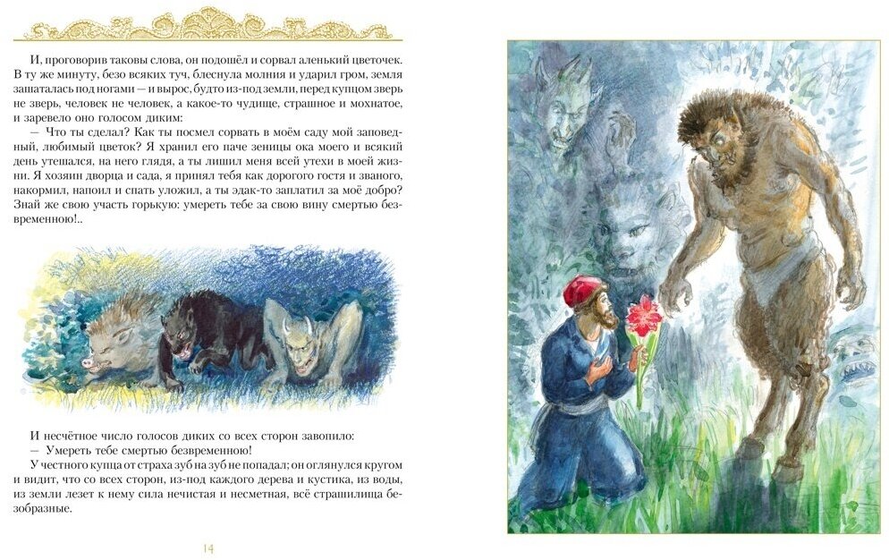 И самой последней мы читали "Аленький цветочек" (потому что про "цветочки" мальчику было интересно в последнюю очередь), причём сын только в середине сказки понял, что цветочек-то "аленький", а не "маленький" Сюжет, к слову, ему был незнаком. Я как-то всё выбирала, выбирала подходящее издание с этой сказкой, да так и не выбрала. Но слушал сын с большим интересом, хотя сначала ворчал, что "про цветочек" - это для девочек, наверное. Но когда оказалось, что тут и про путешествия, и про чудовищ... словом, захватило