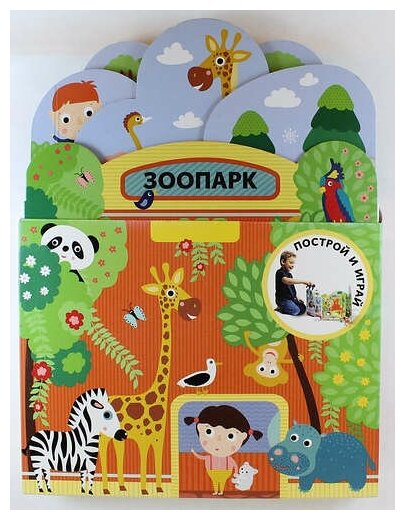 .Эту книжку-игрушку можно собрать двумя способами. Первый способ — разделить зоопарк на отдельные павильоны. Второй способ — соединить все стены вокруг одной игровой площадки. Малыш сможет заглянуть в клетки к полярным животным и животным саванны, узнает новых зверей и птиц и даже посетит океанариум. Играйте и учитесь!