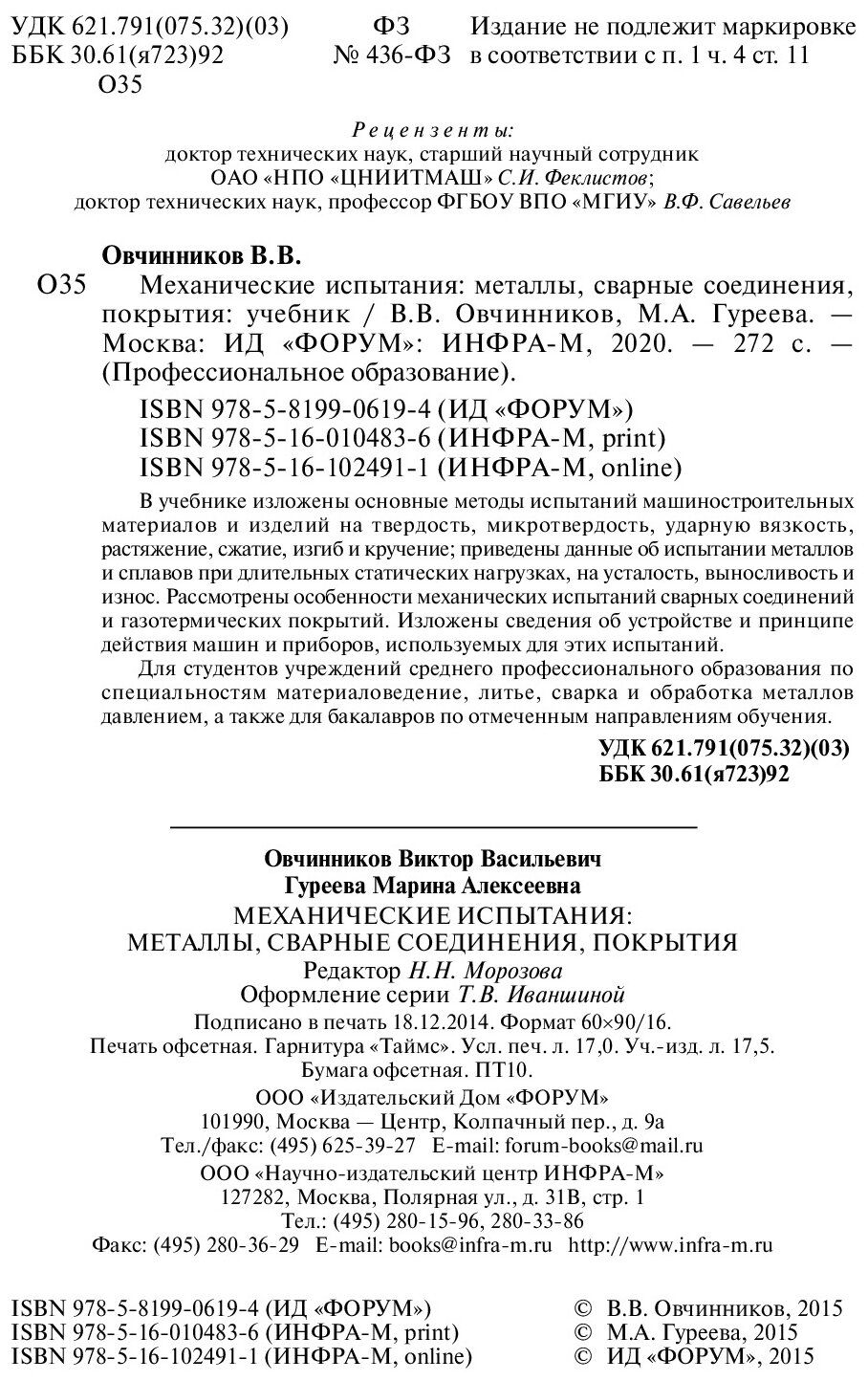 Механические испытания: металлы сварные соединения покрытия. Учебник (Виктор Васильевич Овчинников); ИНФРА-М, 2022