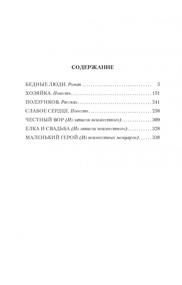 Здравствуйте! Начал знакомство с Федором Михайловичем с этой книги. Помимо романа "Бедные люди", в данное собрание вошли также повести "Хозяйка" и "Слабое Сердце", а также несколько рассказов. Выбрал для знакомства "Бедных людей" в связи с тем, что данное произведение является первым романом в творчестве великого писателя. Поэтому для многих книга будет весьма любопытна. Так сказать, по порядку. Вряд ли Федор Михайлович под словом "бедные" имел ввиду финансовые трудности героев, поэтому я пытался определить, что именно было скрыто под этим словом. В целом после прочтения становится ясна точка зрения автора, и в этом предстоит разобраться каждому читателю. На самом деле произведение вызывает грусть. Роман может тронуть сердечных людей (Хотя меня не тронул). С первых страниц в целом просматривается, к чему приведет Достоевский в финале. Другими словами, роман не впечатлил.