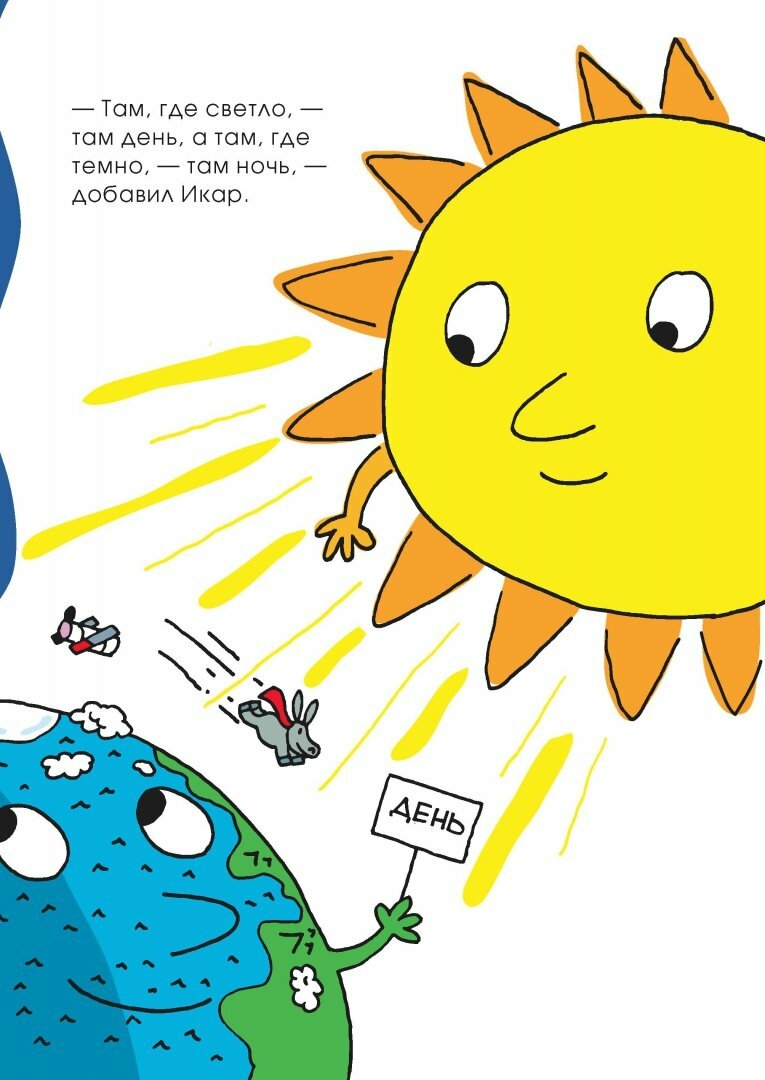 В этой книге другие герои, - Солнце, профессор Молния и кот Икар. Все вместе они рассказывают ребёнку о том, почему на Земле то день, то ночь, почему зимой дни короткие и холодные, а летом, - наоборот, длинные и жаркие.