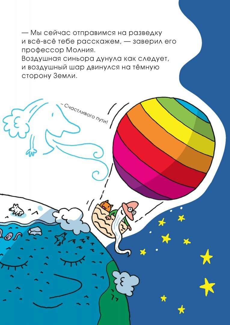Заодно они рассказывают о том, что же происходит в мире ночью, когда большинство людей спят (Солнцу этот вопрос ужасно интересен, ведь оно никогда не видело ночь!), почему ночью привычные вещи кажутся страшными, какие люди работают ночью, вместо того, чтобы спать и т.д.