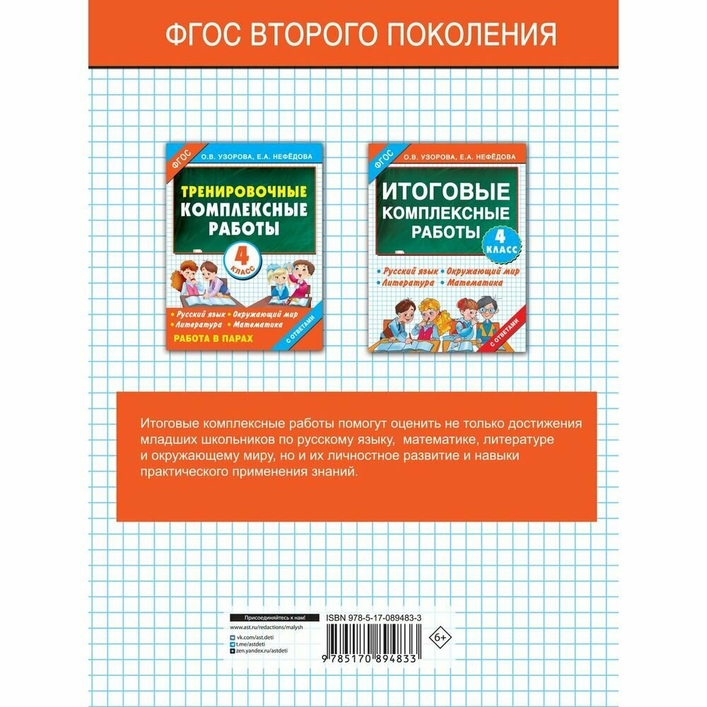 Итоговые комплексные работы. 4 класс. Русский язык. Окружающий мир. Литература. Математика (Нефедова Елена Алексеевна, Узорова Ольга Васильевна); Сова. Малыш (Обучающая и развивающая литература), 2015