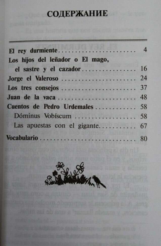 Я изучаю испанский три месяца, но уже начинаю понимать то, о чем написаны сказки и это меня очень радует) Жаль, что книга в мягкой обложке... Она служит мне еще и учебником, где я могу что-то подчеркивать, запоминая. Очень хорошо, что есть выноски с переводом трудных выражений и слов, они помогают!