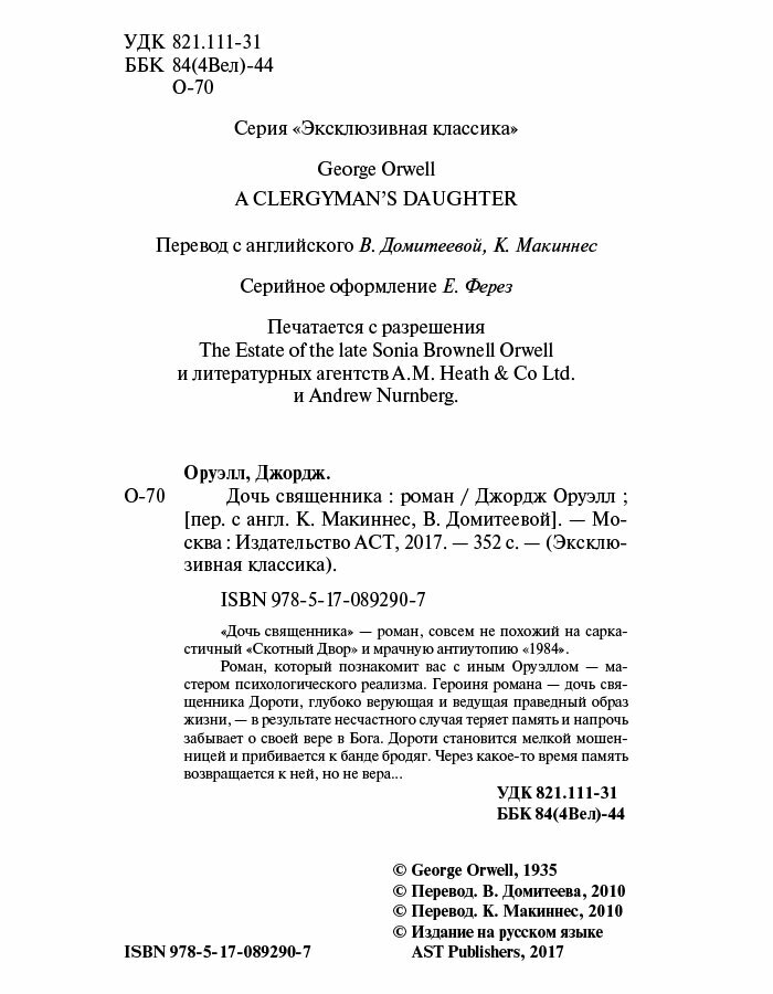 Книга: Дочь священника (Джордж Оруэлл); Издательство АСТ, 1935