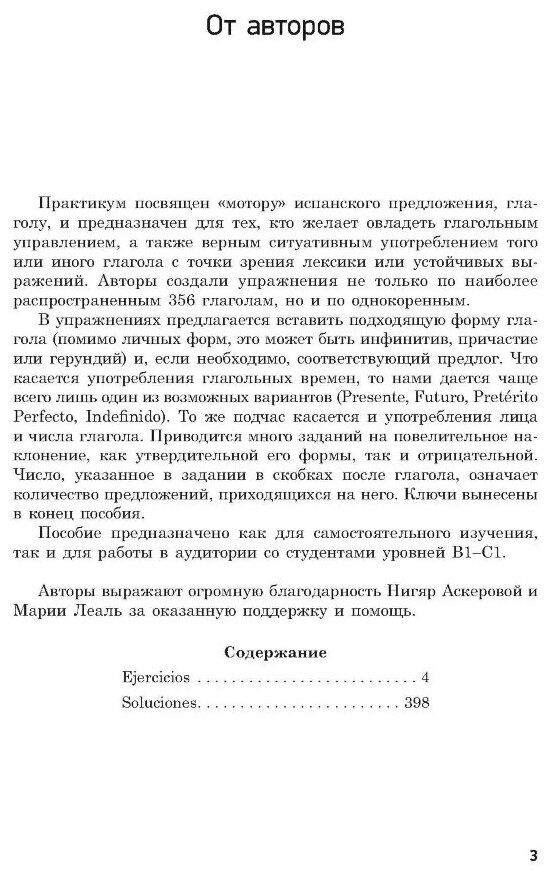 В упражнениях предлагается вставить подходящую форму глагола (помимо личных форм, это может быть инфинитив, причастие или герундий) и, если необходимо, соответствующий предлог. Приводится много заданий и на употребление повелительного наклонения, причем его утвердительной и отрицательной форм. Правильность выполнения упражнений можно проверить по ключам, находящимся в конце книги. Пособие предназначено как для самостоятельного изучения языка, так и для работы в аудитории со студентами, имеющими языковую подготовку уровней В1-С1.