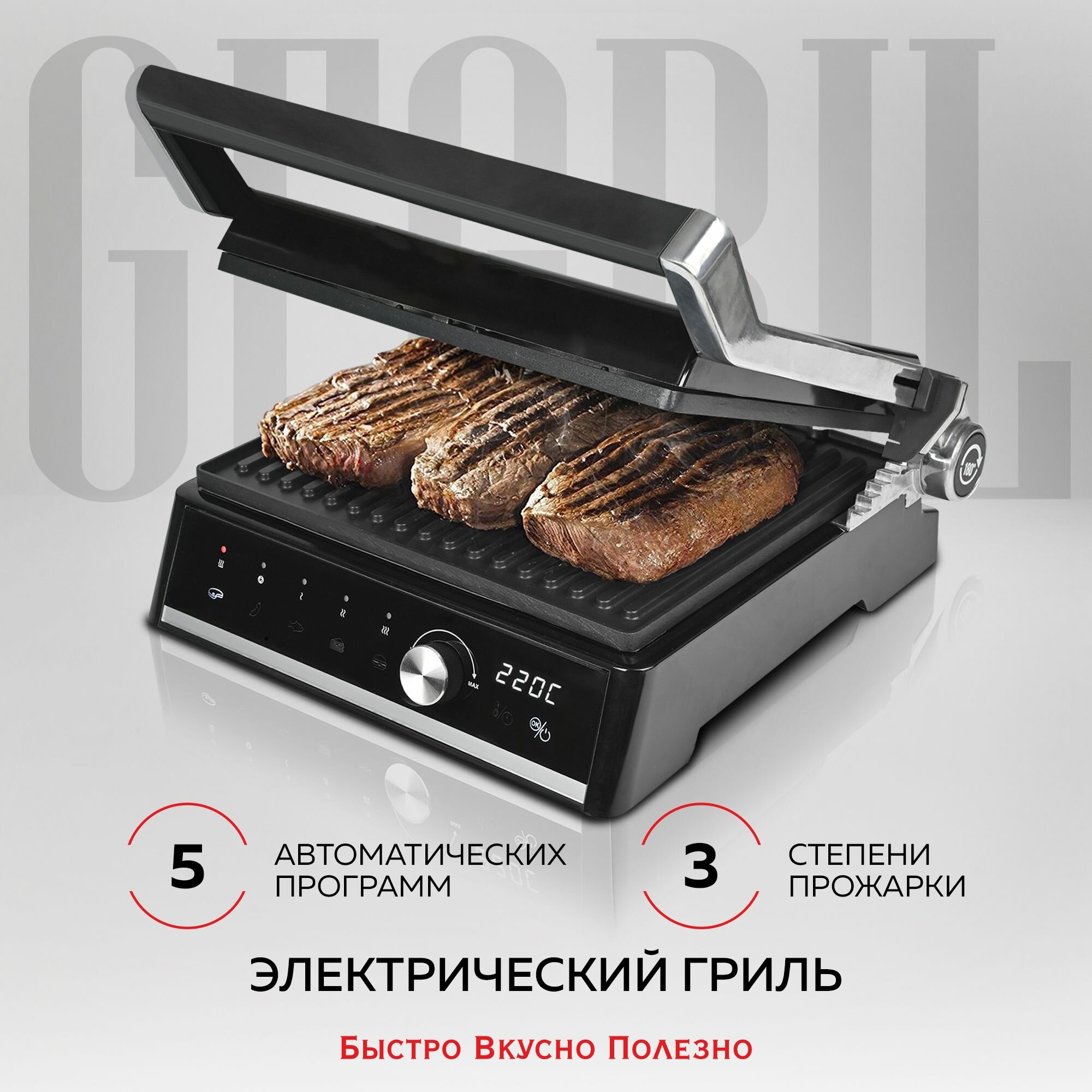 Контактный электрогриль GFGRIL можно использовать в любую погоду: вы без проблем устроите дворовые посиделки или же начнете обычный домашний завтрак вкуснейшими сэндвичами. Мощность 2000 Вт позволяет вам готовить очень быстро и легко. Рабочая панель бытового прибора может использоваться в качестве двусторонней или раскладываться на 180 градусов для приготовления овощей и даров моря. Управлять данным девайсом просто: на LED-экране отображаются выбранный режим и температура.