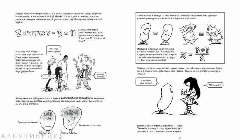 Заказывая эту книгу долго сомневалась - нужна ли она нам. Смущало и то что серьезная наука описывается в комиксах, и то что для 11 летнего ребенка алгебра это как-то звучит слишком по-взрослому. Но получив книгу - пока довольна. Сын буквально сразу же заинтересовался задачками и сходу прочитал и прорешал почти 20 страничек. Так что всем советую. Книга отлично подходит для детей 3-4 класса. Однако и родители найдут в ней много интересного. Так что - рекомендую. И надеюсь найти для более старшего возраста такую же интересную книгу по математике.
