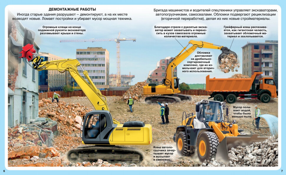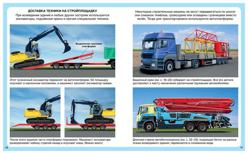 Эта увлекательная книга рассказывает о разной строительной и грузовой технике - от демонтажных роботов и мини-бульдозеров до гигантских карьерных экскаваторов и мощных плавучих кранов. Юные читатели узнают много интересного о строительстве небоскребов, мостов, туннелей, шоссейных и железных дорог, добыче полезных ископаемых, пройдут по лабиринтам подземных выработок, увидят погрузо-разгрузочные операции в порту и открытом море, прокладку кабелей связи под водой.