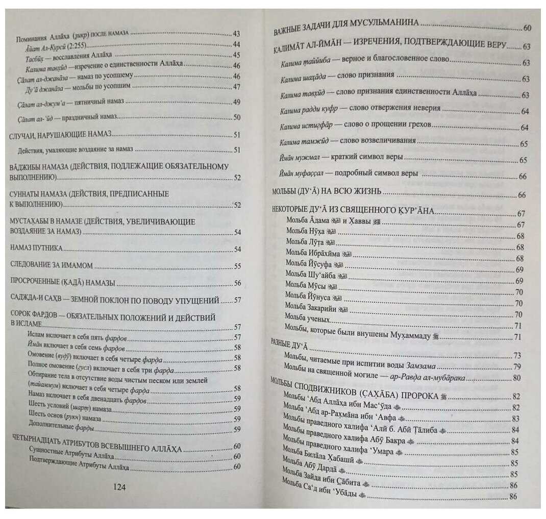 Книга очень необходимая. В ней много полезной информации о совершении всех обязательных и дополнительных намазов. Кроме того даётся информация о совершении и правилах омовения. Еще дается описание самых замечательных дуа необходимых в повседневной жизни мусульманина. Есть целебные дуа и дуа для женщин. Даются дуа из Корана и дуа сподвижников Пророка. Качество книги очень хорошее. Шрифт стандартный. Рекомендую всем к её приобретению. Можно сделать настольной книгой.