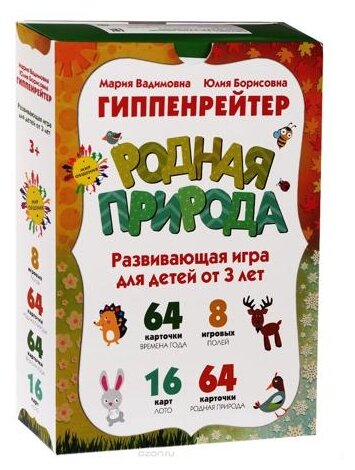 Родная природа. Развивающая игра для детей от 3 лет. Времена года: 64 карточки. 8 игровых полей. Лото: 16 карт. Родная природа: 64 карточки (Гиппенрейтер Ю.Б., Гиппенрейтер М.); АСТ, 2015
