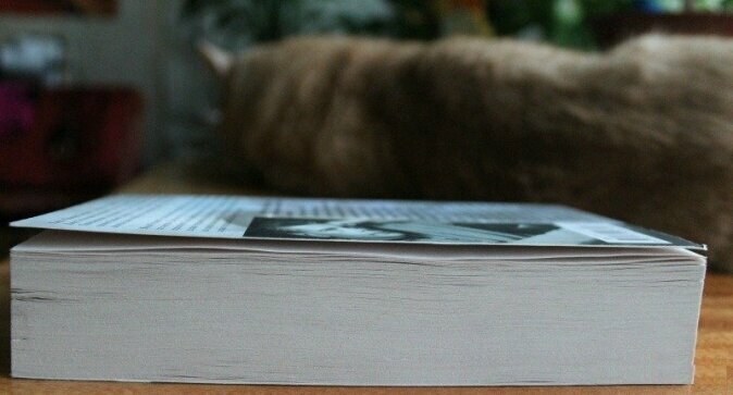 Странички проклеены вполне аккуратно, клей почти незаметен. После прочтения 100-200 и еще немножечка страниц, книжка не развалилась, ни одна страница не выпала, переплет помялся сильно, ну так этого стоило ожидать, тем более, что я страницы разворачиваю почти полностью.