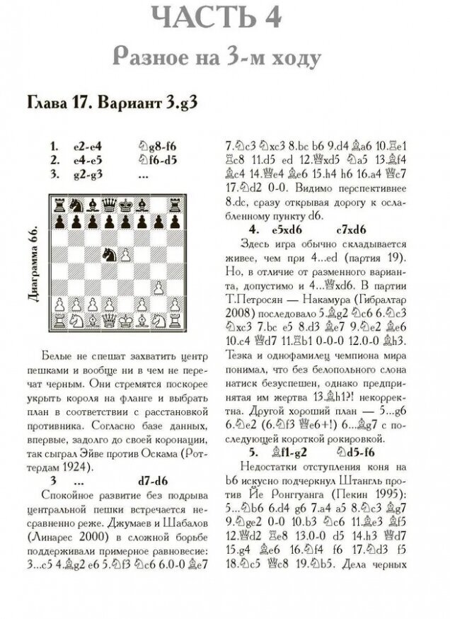 Аннотация несколько преувеличивает полезность книги для совсем любителей: слишком подробно, в вариантах и идеях утонуть можно. Но для квалифицированного шахматиста такая энциклопедия – кладовая полезных сведений и рекомендаций. Ведь защита Алехина хороша тем, что «закрывает» самый главный, самый ударный и потому самый популярный ход белых – 1.е4. То есть это один из «дебютов на всю жизнь».