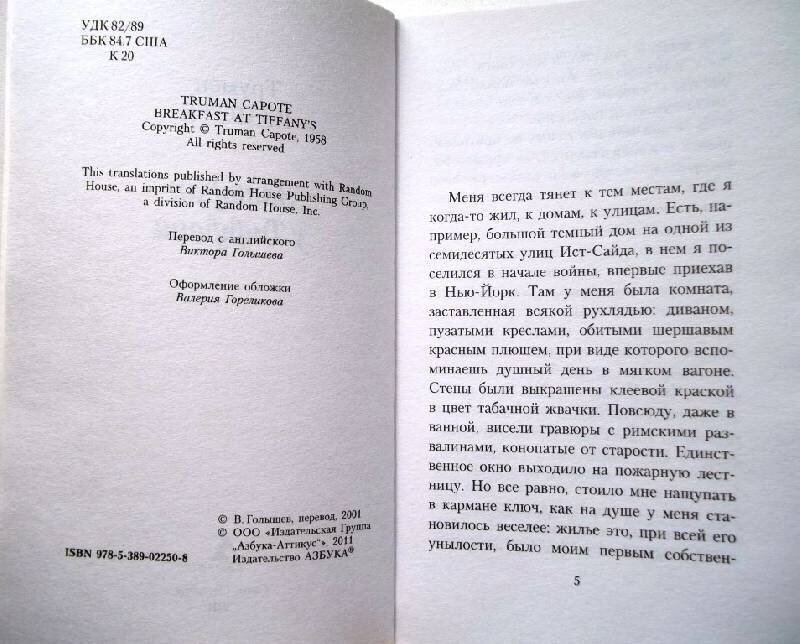 Очень понравилась повесть "Завтрак у Тиффани"! Фильм смотрела давно, но по ощущениям книга намного более глубокая, отображает переживания героев, описывает характер и помогает больше сопереживать. И язык Капоте очень понравился! Пожалуй, еще раз пересмотрю фильм, неужели он на самом деле такой романтический и комедийный как я помню?