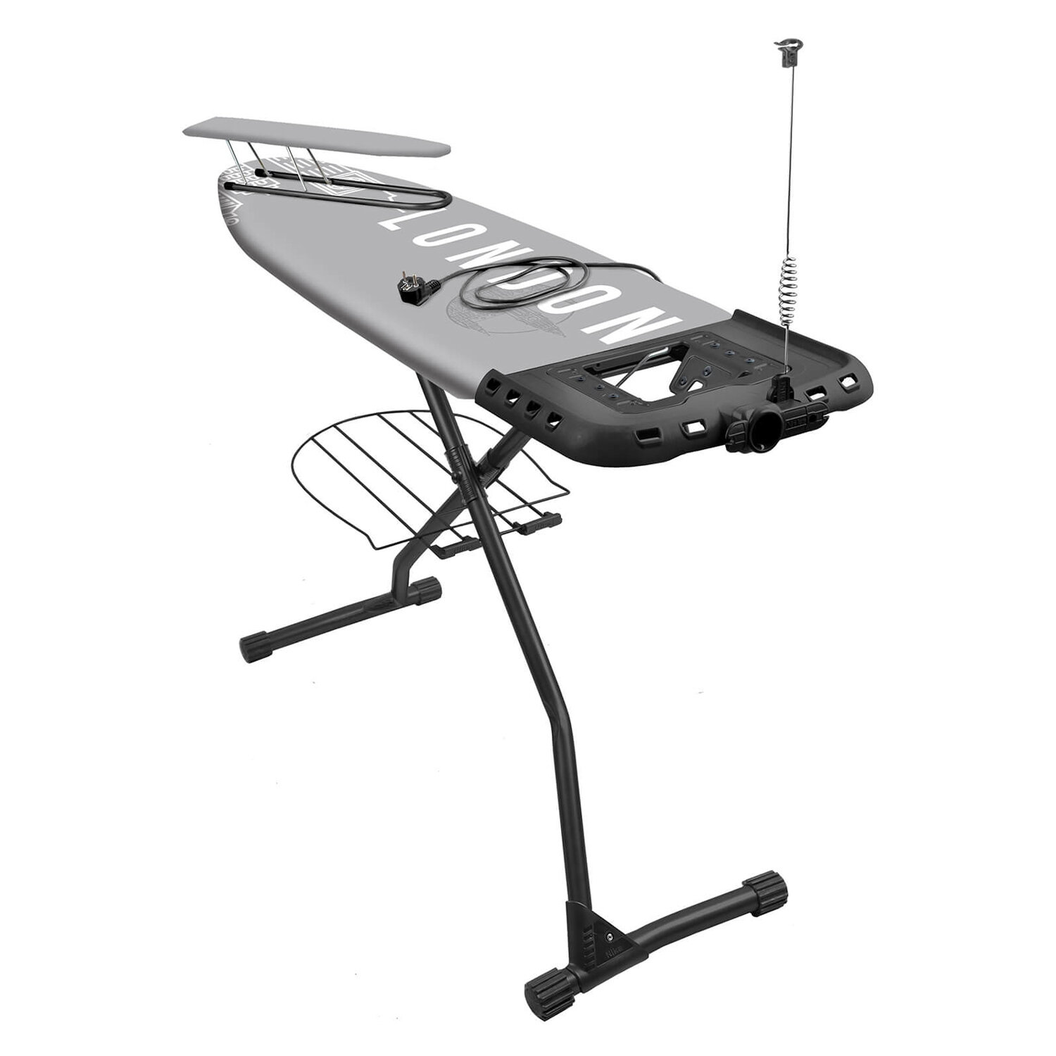 Доска гладильная "" с гладильным столом из металлического перфорированного листа для свободного прохождения пара. Размер полотна 1220х420 мм. Устойчивая металлическая ножка. Пластиковые наконечники на опорах против скольжения и повреждения пола. Опоры гладильной доски надежно фиксируются в сложенном положении. Автоматический многоуровневый регулятор высоты до 1 м.