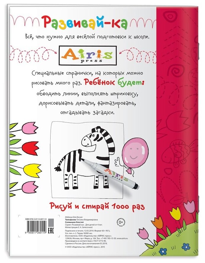 Солнышко блестит. Увлекательное пособие для подготовки руки к письму. Рисуй и стирай 1000 раз (Тимофеева Татьяна Владимировна); Айрис-пресс, 2015