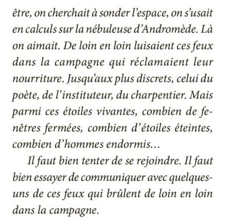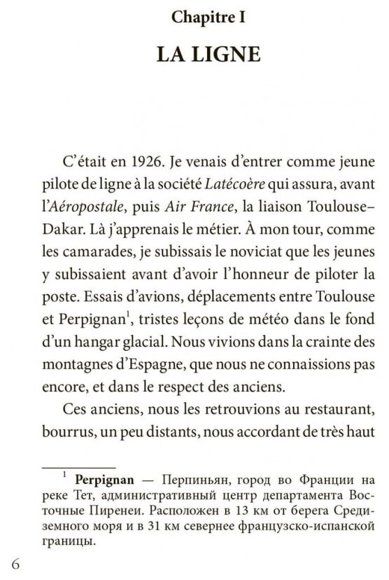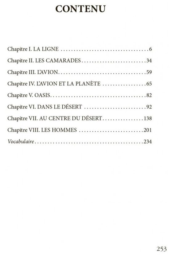 Прекрасная книга, на языке автора. Не смотря на замечательные переводы, на родном языке всё же проще оценить всю философию выдающегося гуманиста - Антуана де Сент-Экзюпери. Он тонко видел мир и людей вокруг себя, описывал доступным языком такие простые, но важные человеческие качества, как истинную дружбу, любовь, верность и преданность. Как в тяжелых условиях на первый план становится ценность человеческой жизни и свободы, глоток воды пустыне - важнее всех денег мира. И как настоящие друзья верят в тебя и ждут, когда никто уже не надеется на спасение. Как муж думает о жене и её благополучии и совершает невозможное, для того, чтобы к ней вернуться. Удивительная история о людях и их подвигах.