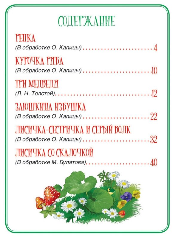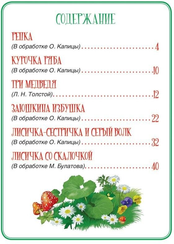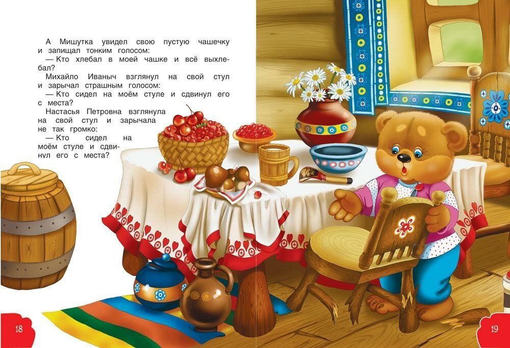 В книгу вошли самые известные русские народные сказки для малышей: "Курочка Ряба", "Репка", "Три медведя", "Заюшкина избушка", "Лисичка-сестричка и серый волк".
