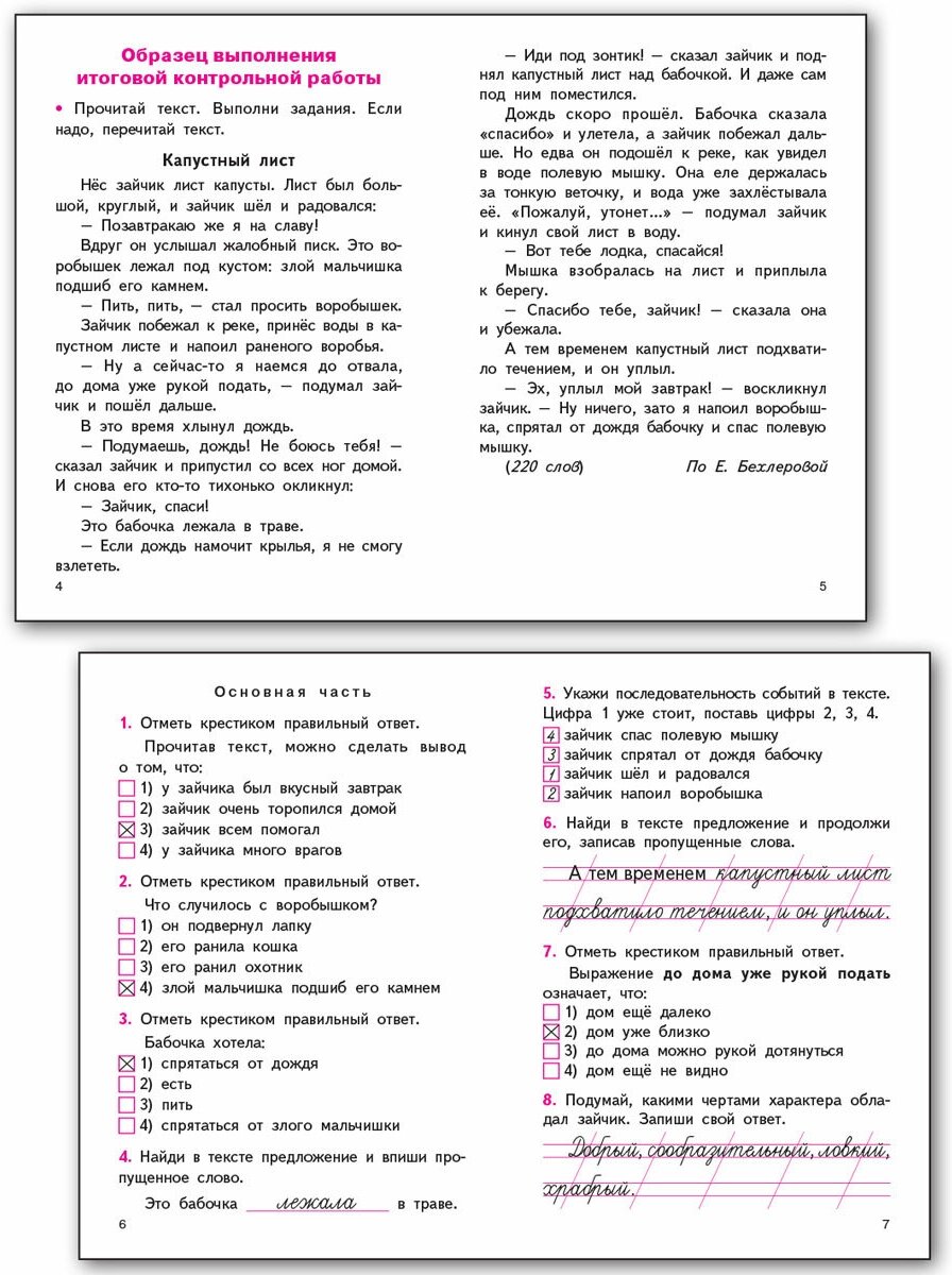 В издании представлены 7 вариантов итоговой контрольной работы по курсу «Литературное чтение» за 1 класс, составленных с учётом требований ФГОС начального общего образования и требований к уровню подготовки учащихся. Каждый вариант содержит 10 заданий. Приведён образец выполнения итоговой контрольной работы. В конце издания даны ответы.