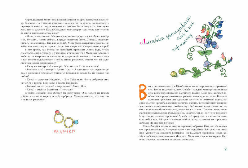 Мадикен живёт в большом красном доме возле речки. Лучшего места, чем это, на всём свете не сыскать, считает она. Ещё там живут мама и папа, помощница Альва и малышка Пимс, которая везде и всюду следует за своей старшей сестрой. Куда одна, туда и другая. Вместе им всегда весело. Да и как может быть иначе! Ведь здесь столько всего интересного: можно купаться, качаться на качелях, играть в крокет, поливать огород и поить молоком ёжика!