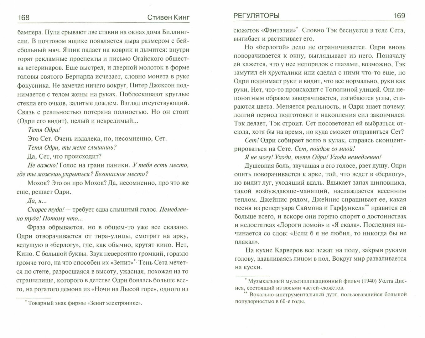 Когда речь заходит о Стивене Кинге, то на ум сразу приходят "Мертвая зона", "Мизери", "Сияние", "Оно" и так далее и тому подобное. Атмосферные, страшные и по своему логичные произведения. Подобное можно перечитать не раз и не два. Но при прочтении "Регуляторов" постоянно возникал один и тот же вопрос - "чем руководствовался автор, когда писал эту чушь?" Бессмысленность и примитивность происходящего в книге просто поражает. После прочтения в голове не остается НИЧЕГО. Будто ты промотал рулон туалетной бумаги. Хотя даже в этом случае все было бы лучше - он хоть стоит копейки.