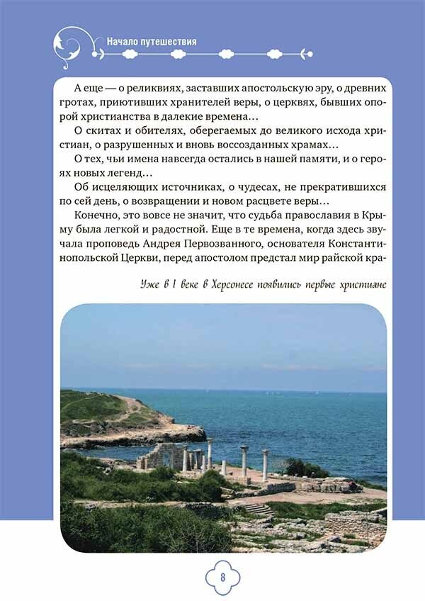 О двадцати святынях рассказано в православном путеводителе.Издание красочное.После прочтения сразу хочется посетить эти удивительные места. Особенно запомнился рассказ о Топловском женском монастыре с его целительными источниками и удивительной судьбой, находится он в Белогорском районе Крыма. Удивительный Крым, его история и православные святыни.
