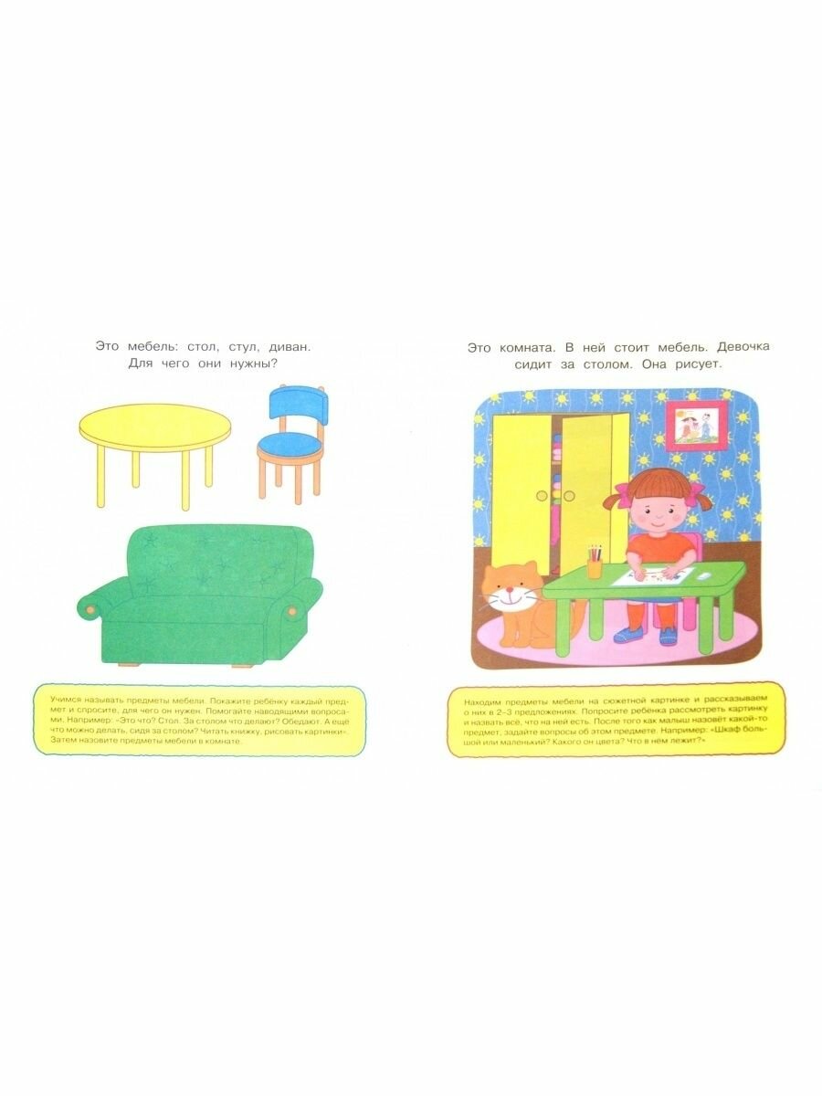 Книга показалась бесполезной и малоинтересной. Все изображения, представленные в пособии, встречаются в быту и других книгах в естественном контексте. Какой смысл учить их названия по выборочным иллюстрациям? Особой пользы в искусственной категоризации предметов по рисункам я также не увидела. Ребёнку быстро надоело заниматься (называть предметы), стал просить почитать "про цветочки", "про сковородку" и т.д. Очень тонкая обложка.