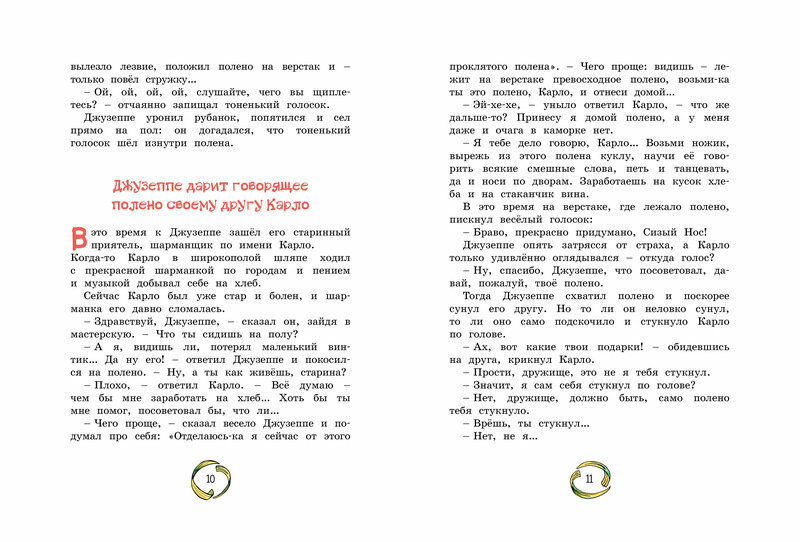 Про текст говорить не буду, потому что все знают сказку про деревянного человечка.