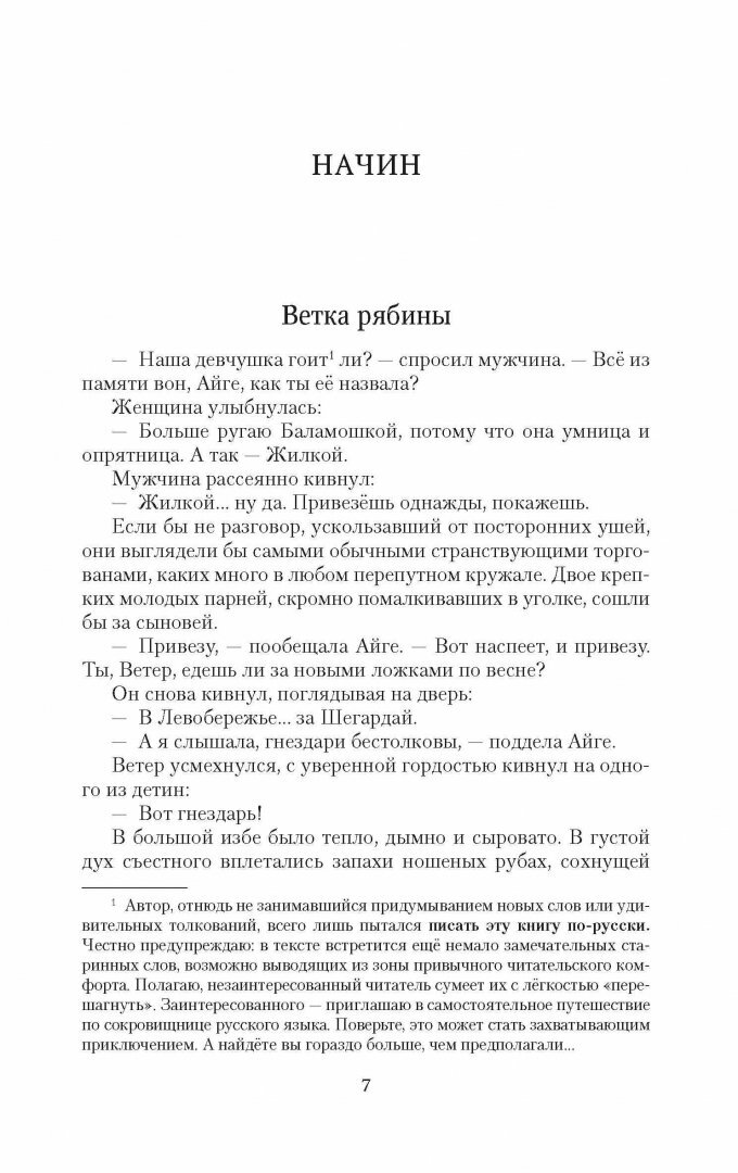 На первой странице Начина (по-нашему, пролога) начались заковыки в виде непонятных слов. При этом автор сама дала понять (в сноске на странице), что и дальше будут попадаться слова, вышедшие из употребления, но исконно наши, славянские.