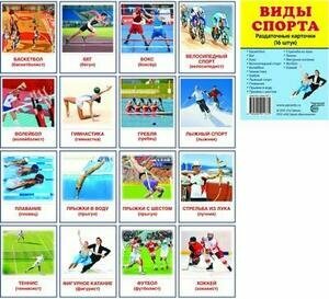 Вашему вниманию предлагаются познавательные раздаточные карточки "Виды спорта".
