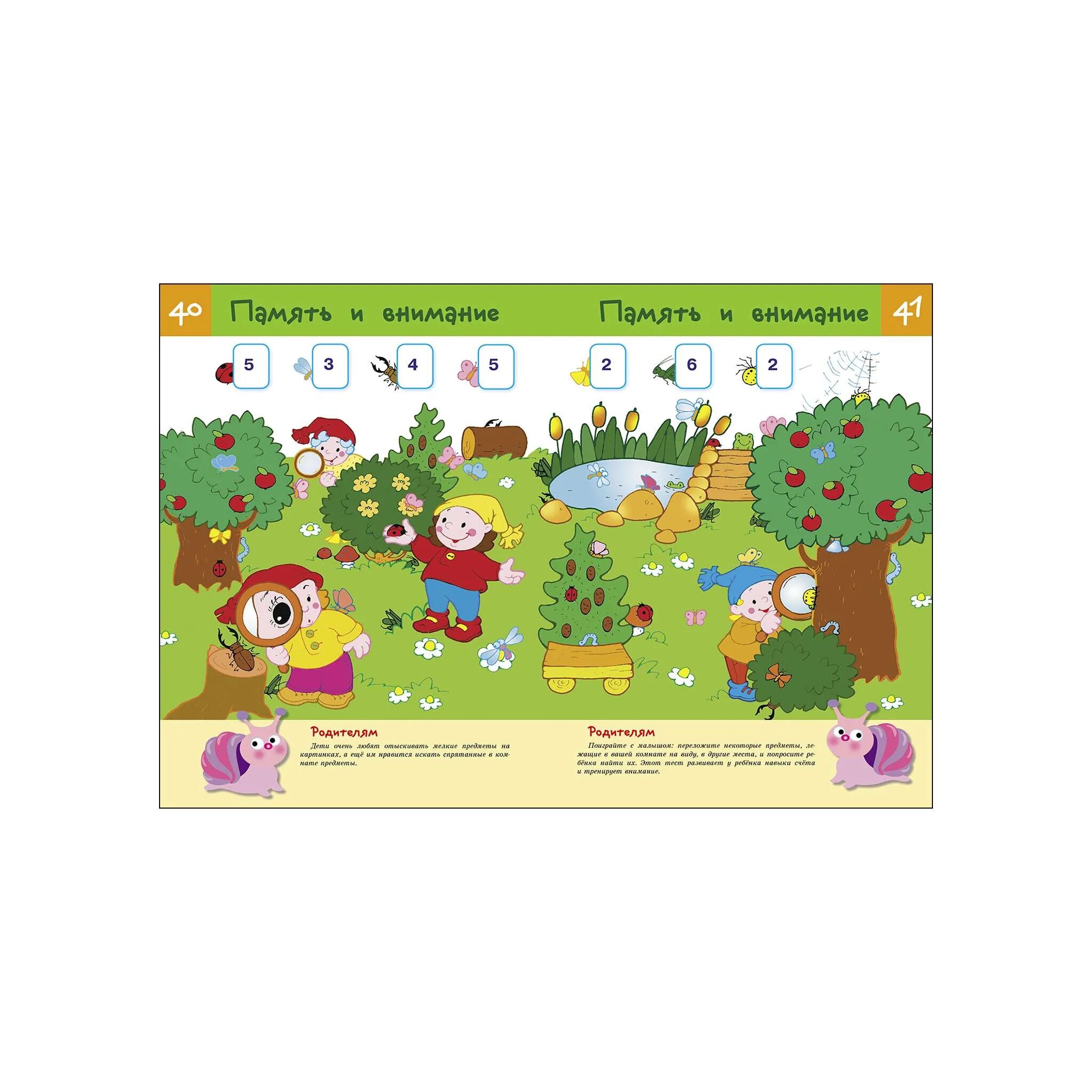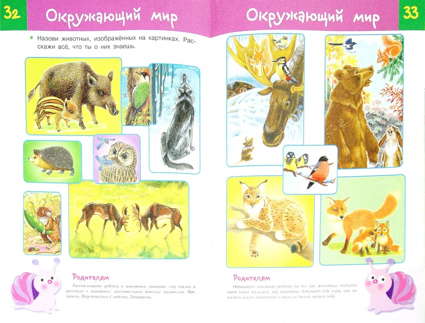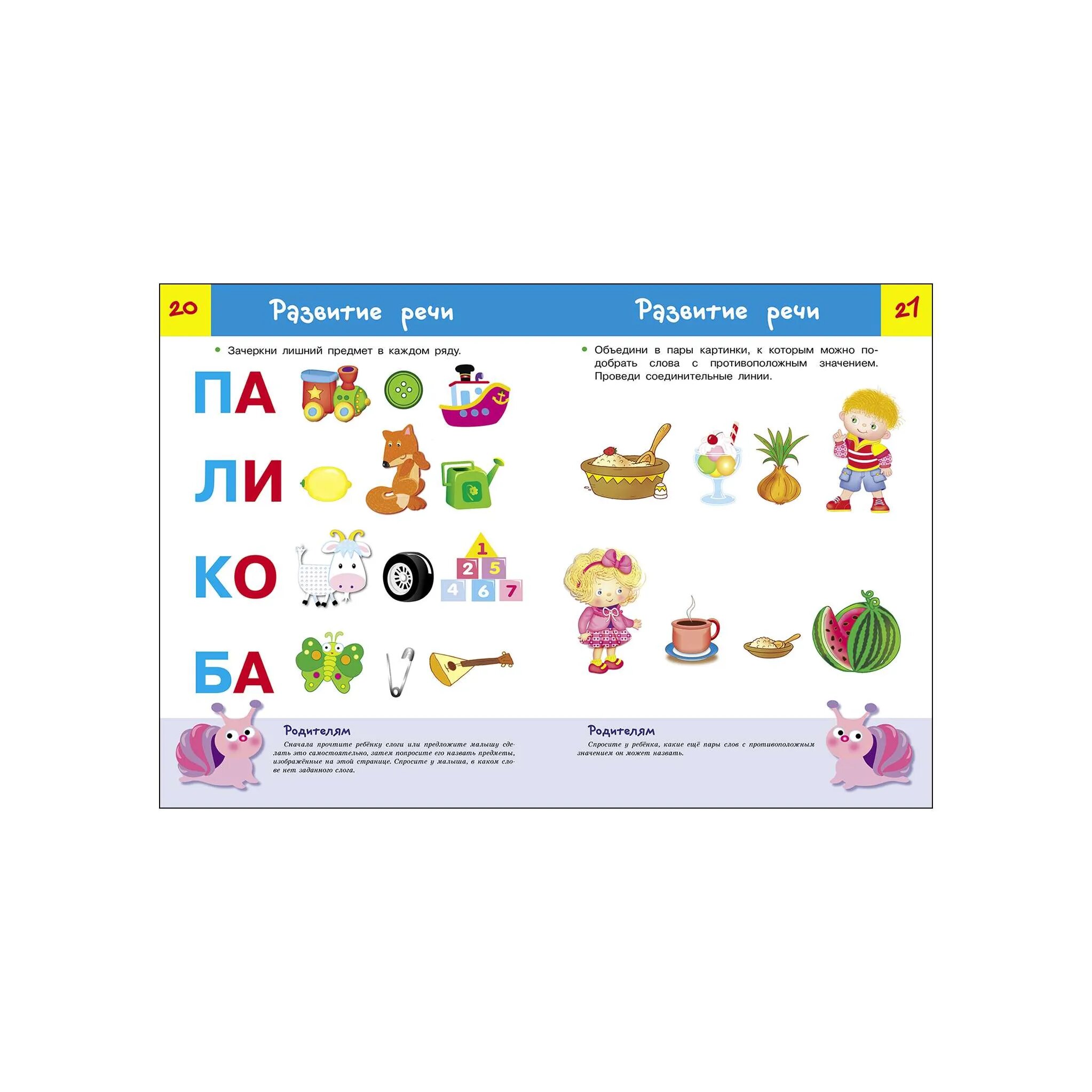 Деление это весьма условное, так как некоторые задания затрагивают сразу несколько сфер знаний или направлены на отработку нескольких навыков. Совсем не обязательно выполнять все задания по порядку. Вы можете выполнять по одному-два задания из нескольких разделов в течение одного занятия. Главное, чтобы это было интересно вашему малышу, чтобы он учился с удовольствием. Внизу каждой странички вас ждёт забавная улитка, она поможет вам оценить, насколько хорошо ваш малыш справился с заданием.