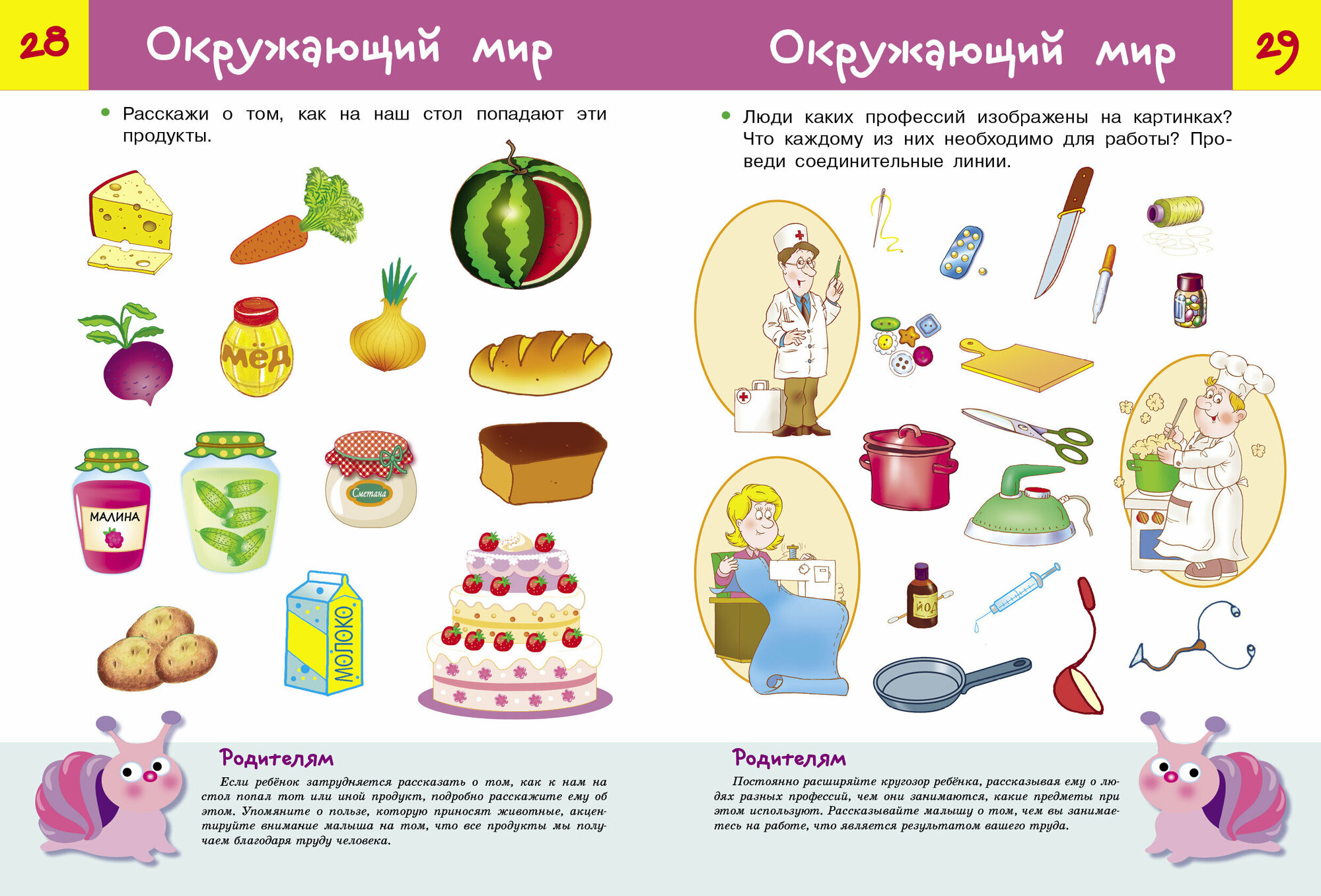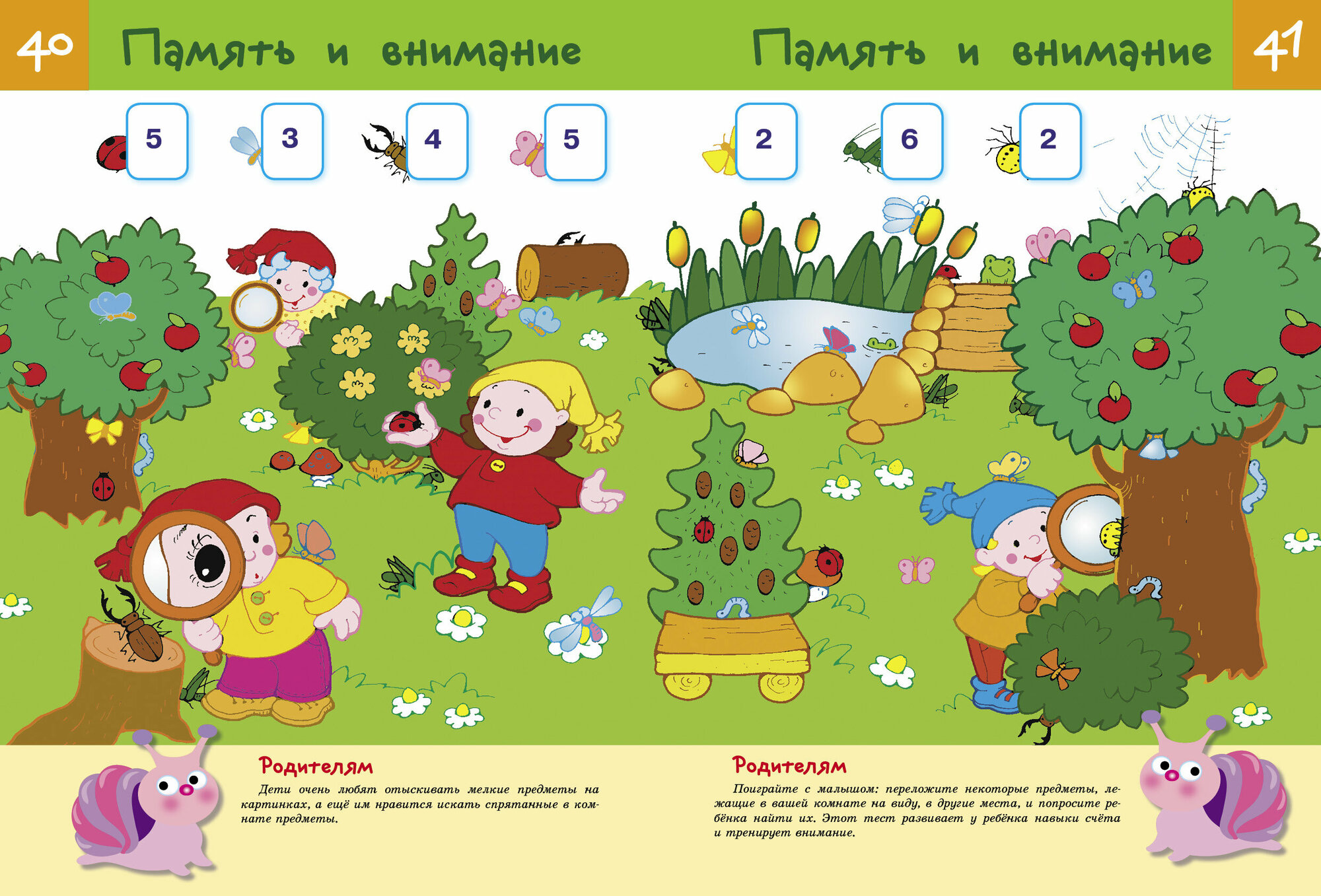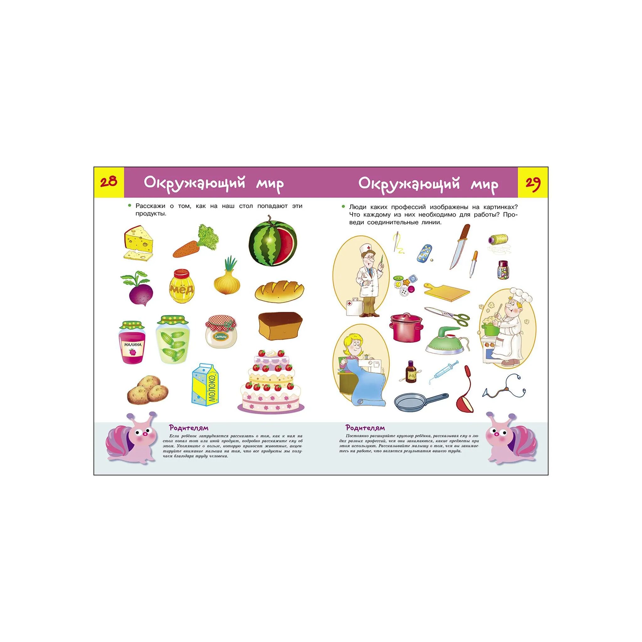 Деление это весьма условное, так как некоторые задания затрагивают сразу несколько сфер знаний или направлены на отработку нескольких навыков. Совсем не обязательно выполнять все задания по порядку. Вы можете выполнять по одному-два задания из нескольких разделов в течение одного занятия. Главное, чтобы это было интересно вашему малышу, чтобы он учился с удовольствием. Внизу каждой странички вас ждёт забавная улитка, она поможет вам оценить, насколько хорошо ваш малыш справился с заданием.