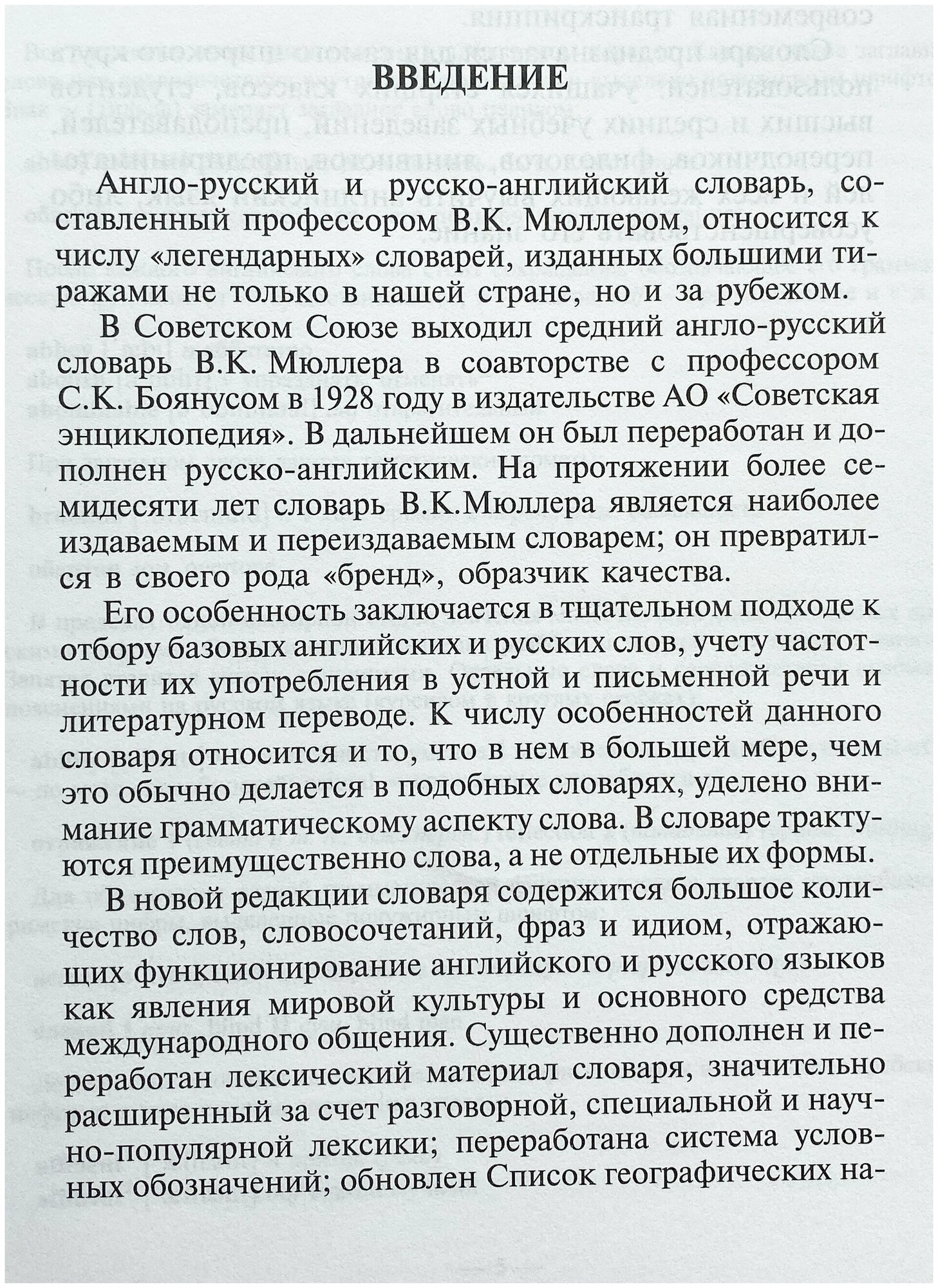 Большой Англо-Русский и Русско-Английский словарь В.К. Мюллера рассчитан на читателей с разной степенью языковой подготовки. С его помощью можно переводить тексты любой степени сложности, как с английского языка на русский, так и с русского на английский. В новой редакции словаря даны наиболее употребительные словосочетания и общепринятые значения слов. Словарная база расширена до 300 тысяч слов.